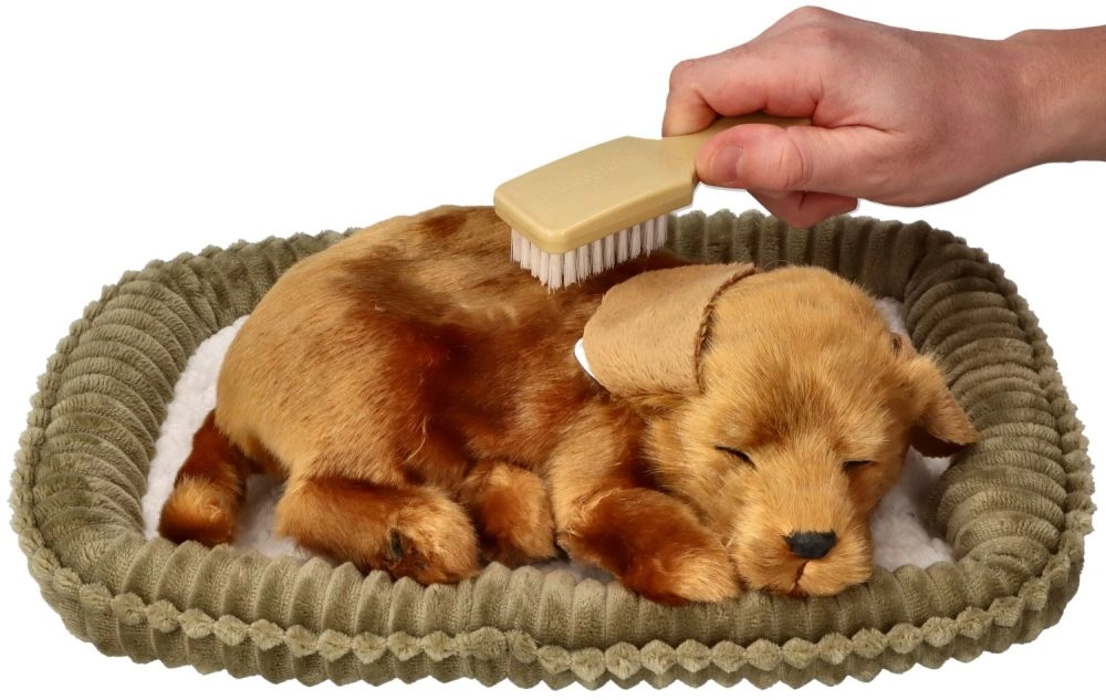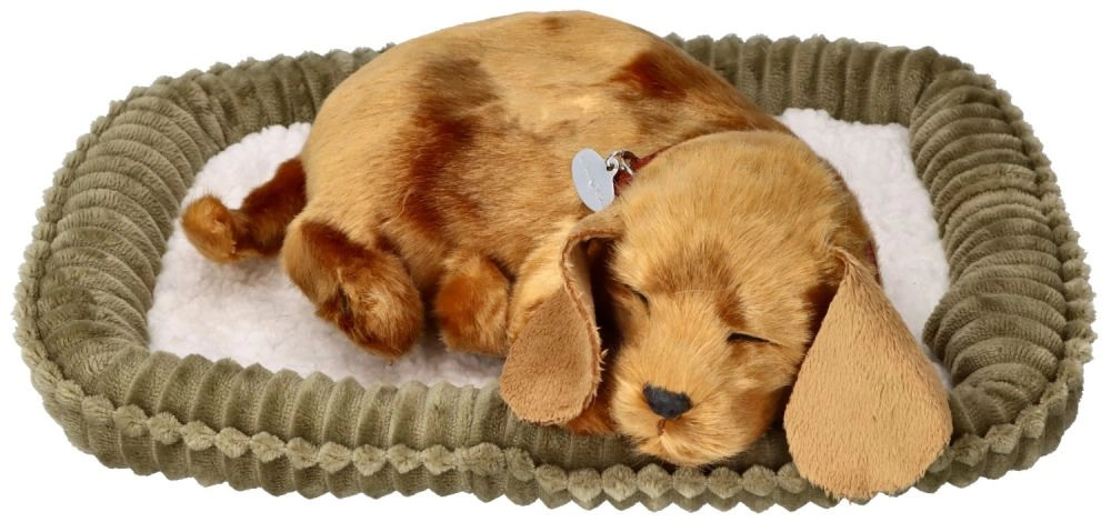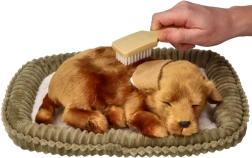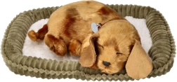 El perrito de peluche duerme plácidamente e imita una suave “respiración” que calma y crea la sensación de tener una mascota de verdad. Ideal para relajarse por la noche o descansar por la tarde.