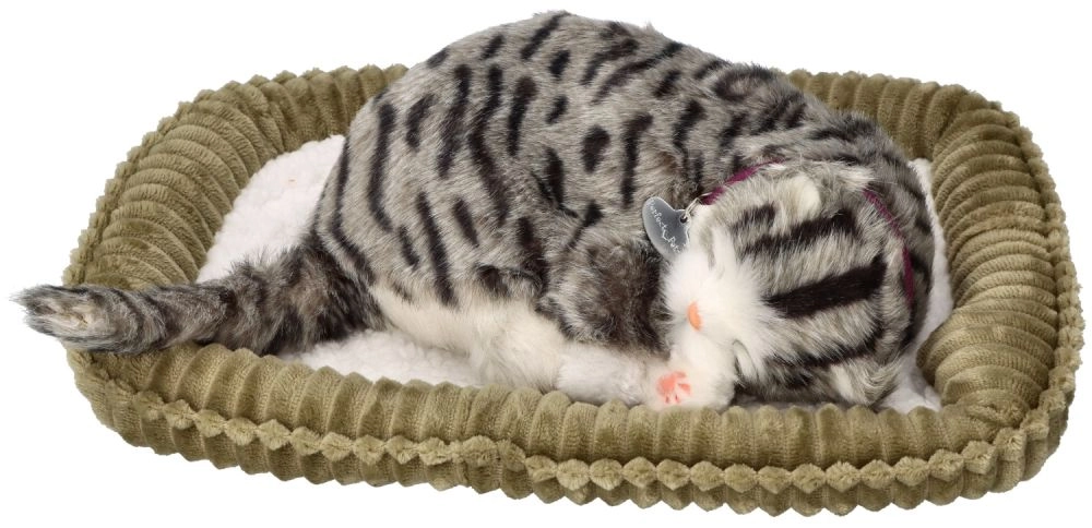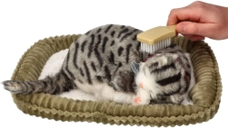 La suave “respiración” y el auténtico patrón atigrado, con un gracioso collar, hacen que parezca un gatito dormido de verdad. Compañero ideal para momentos de tranquilidad y relax.