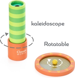 - Incluye un caleidoscopio y 3 lentes con diferentes ajustes que cambian el color, la forma y el tamaño del mundo que nos rodea