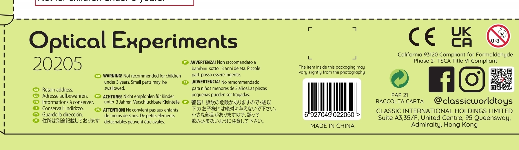 Este set es ideal para dar los primeros pasos en el mundo de la ciencia y las ilusiones ópticas. Ayuda a desarrollar habilidades prácticas y la creatividad de los niños.