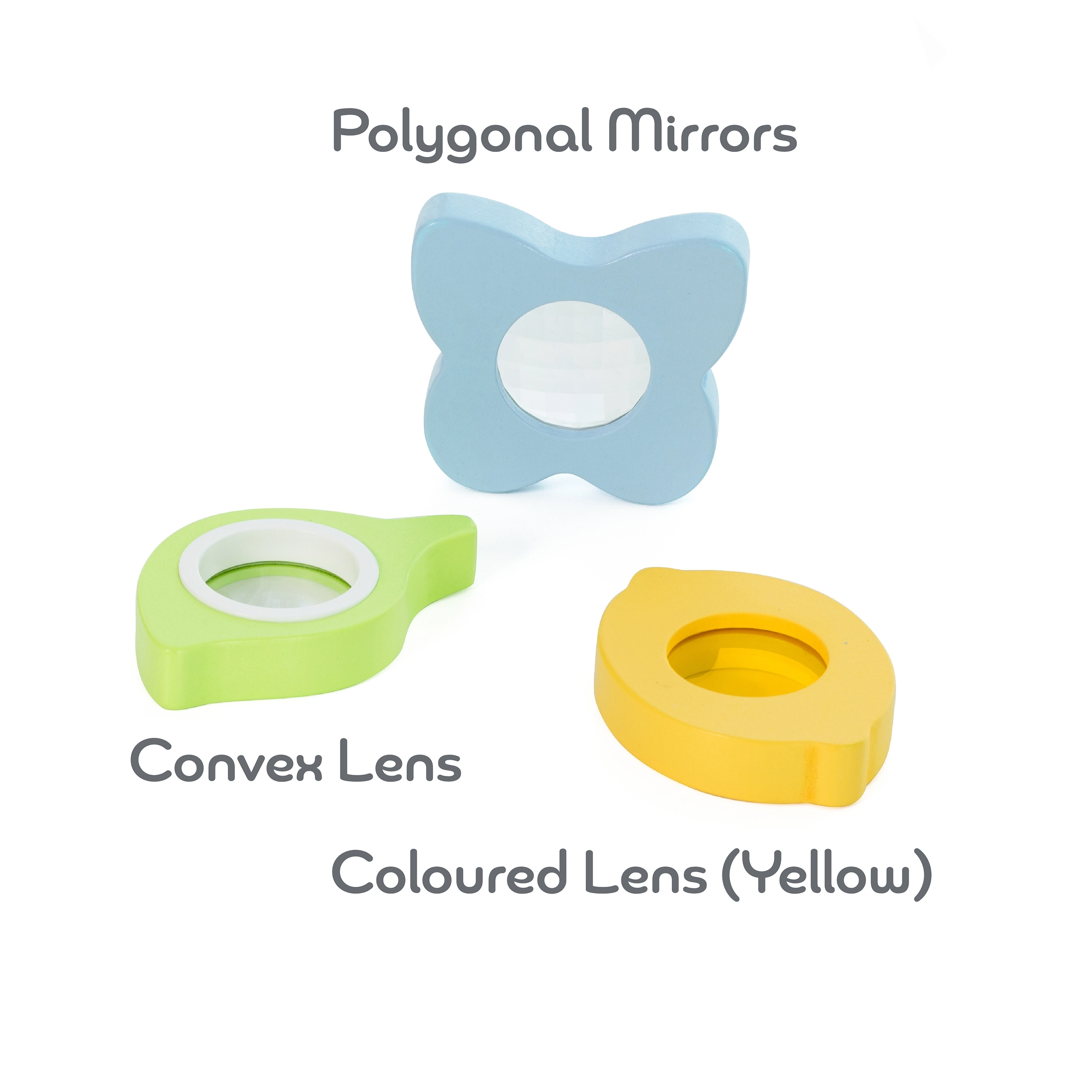 Incluye un caleidoscopio, un prisma, una rejilla óptica y un animador de imágenes: todo lo que necesitas para horas de descubrimiento y diversión.
