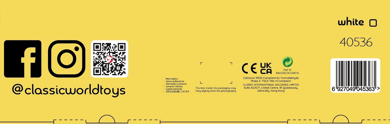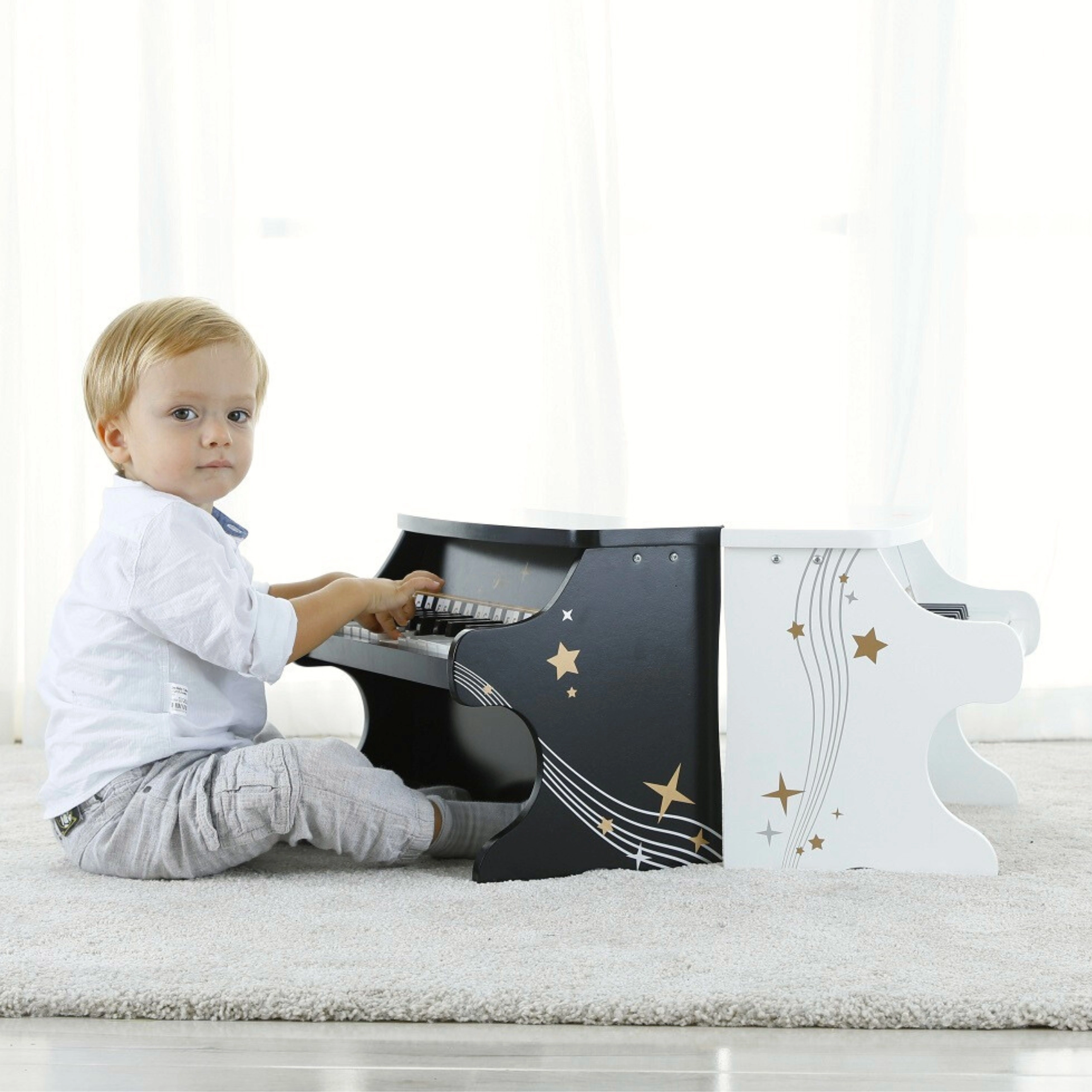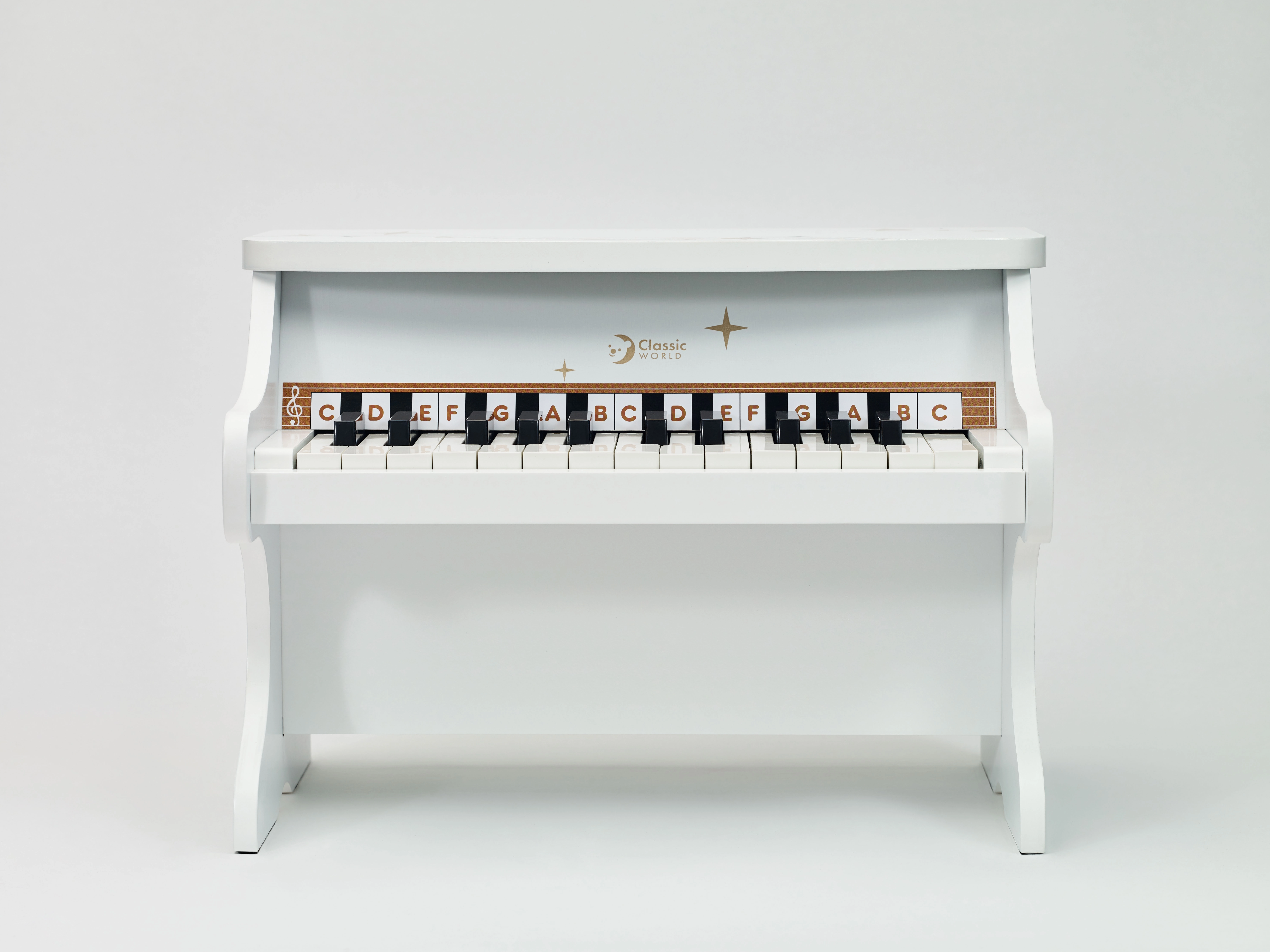 El piano infantil CLASSIC WORLD está cuidadosamente fabricado en madera y lacado con un acabado no tóxico en color blanco. Su diseño realista y el tono claro acercan una auténtica experiencia musical y animan a los niños a explorar la melodía y el ritmo.