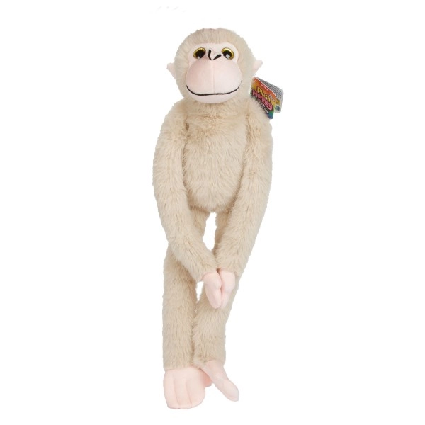 Este mono de peluche es el juguete ideal para todos los pequeños exploradores. Mide 55 cm y está hecho de un material suave agradable al tacto. El monito cuenta con cierre de velcro, lo que añade interactividad y permite sujetar o desprender sus extremidades. Así, los niños pueden aprender y experimentar continuamente cómo ajustar el monito a su gusto.