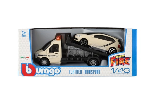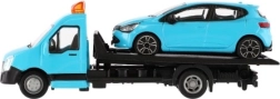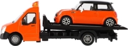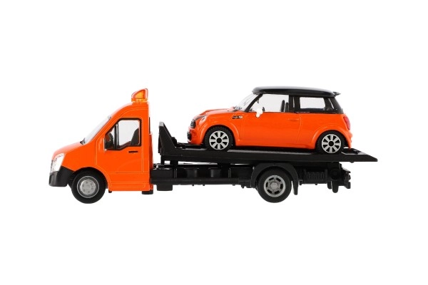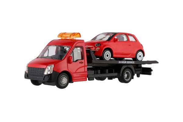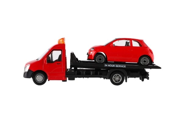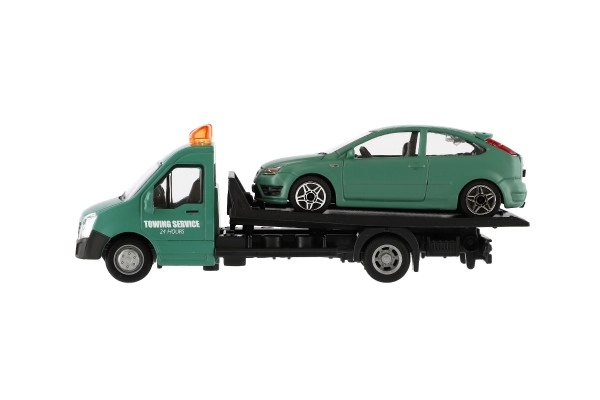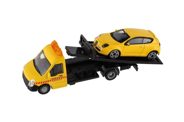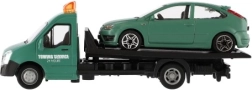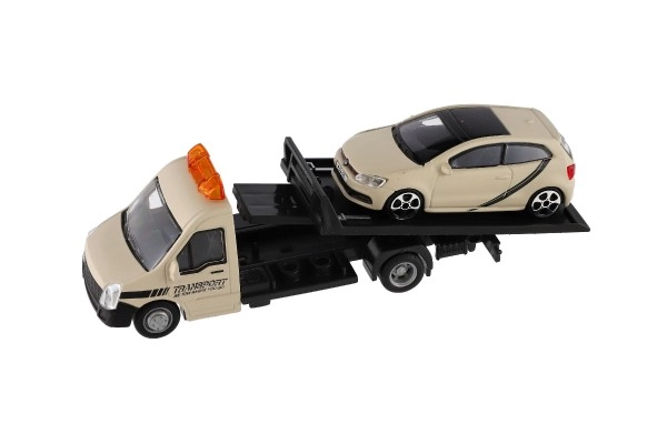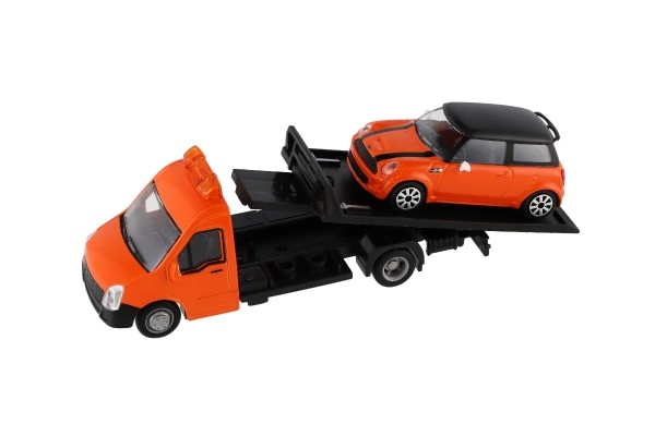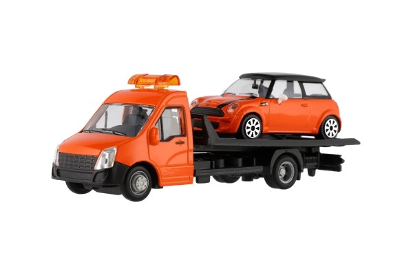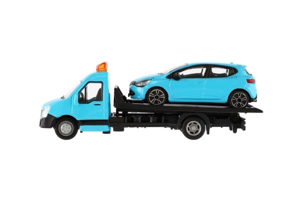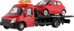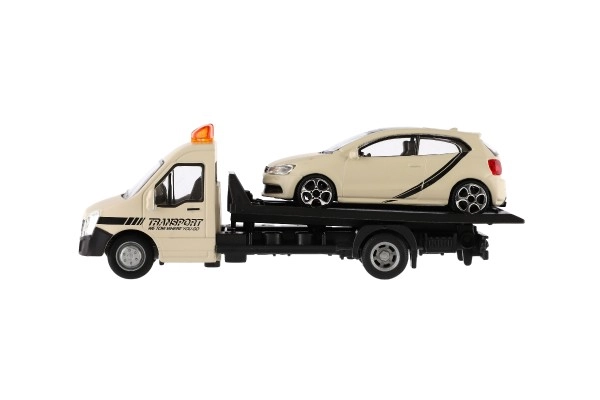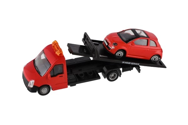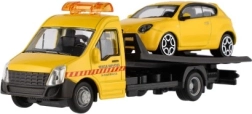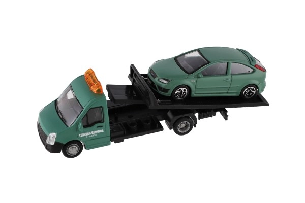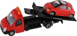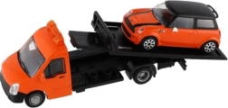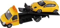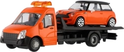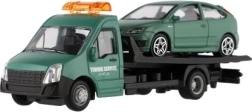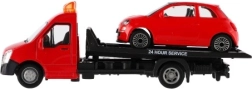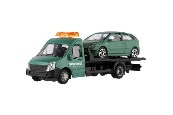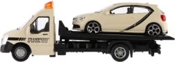 El modelo mide 21 cm e incluye una plataforma de remolque para cargar el coche incluido, ideal para escenas de tráfico urbano, rescates y transporte de vehículos. Gracias a su alta calidad, es una gran opción para coleccionistas y para niños a partir de 3 años.
