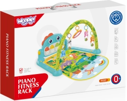 Suave y colorida manta de juego con arco y motivo de dinosaurios de la marca WOOPIE que ofrece un lugar seguro para relajarse, descubrir y jugar desde el nacimiento. Gracias a los juguetes colgantes con animalitos, espejito, cuentas deslizantes y panel musical con huevitos de dinosaurio, favorece el desarrollo de todos los sentidos, la coordinación ojo–mano y la curiosidad natural del bebé.