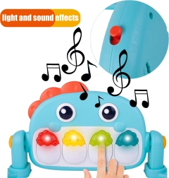 El panel reproduce melodías agradables que entretienen y calman. El divertido tema de dinosaurios estimula la curiosidad natural y prolonga el tiempo de juego sobre la manta.