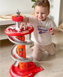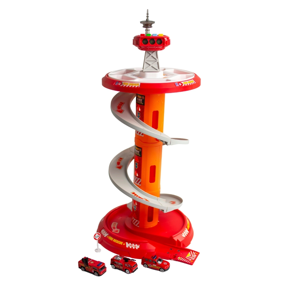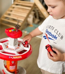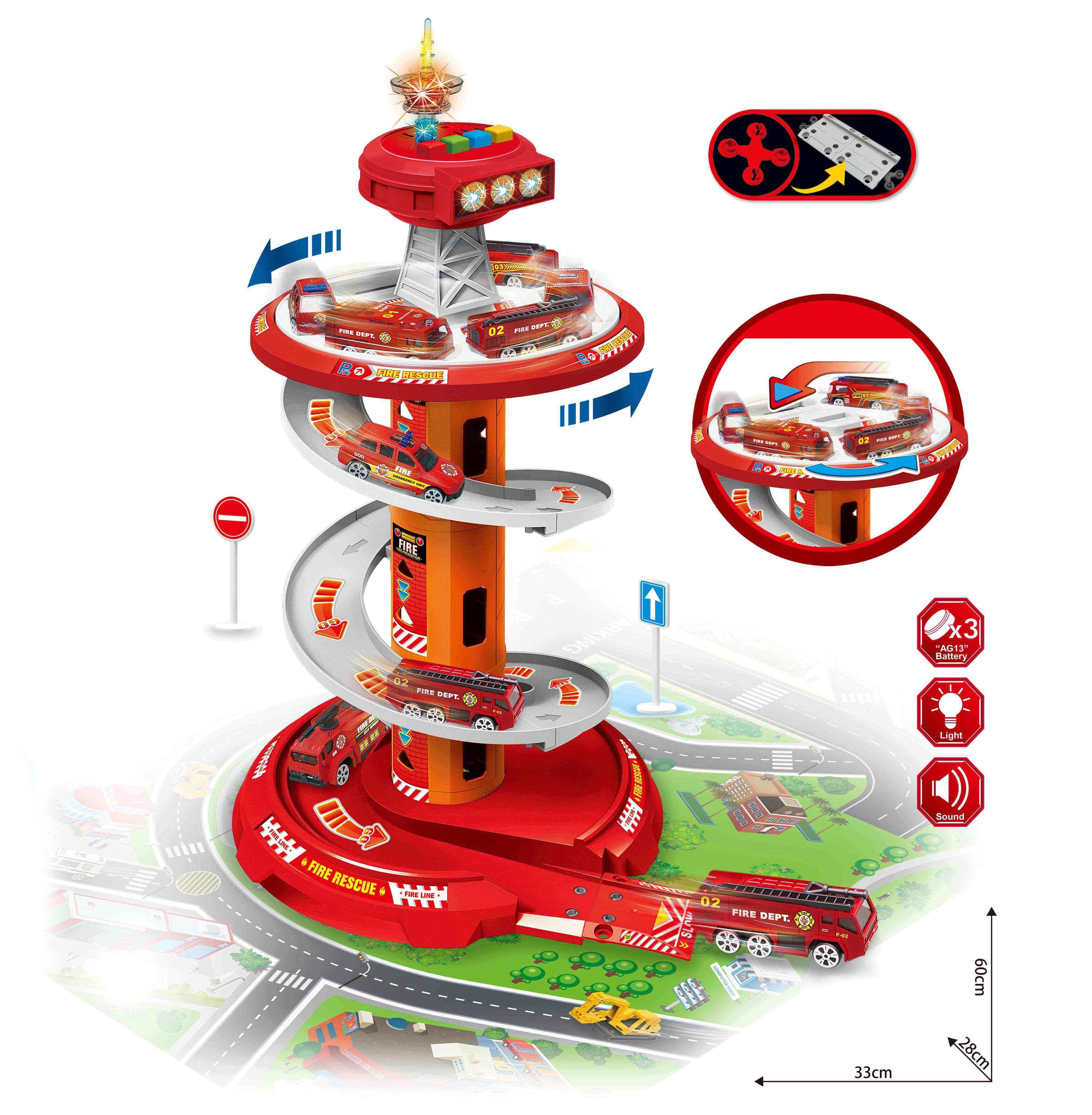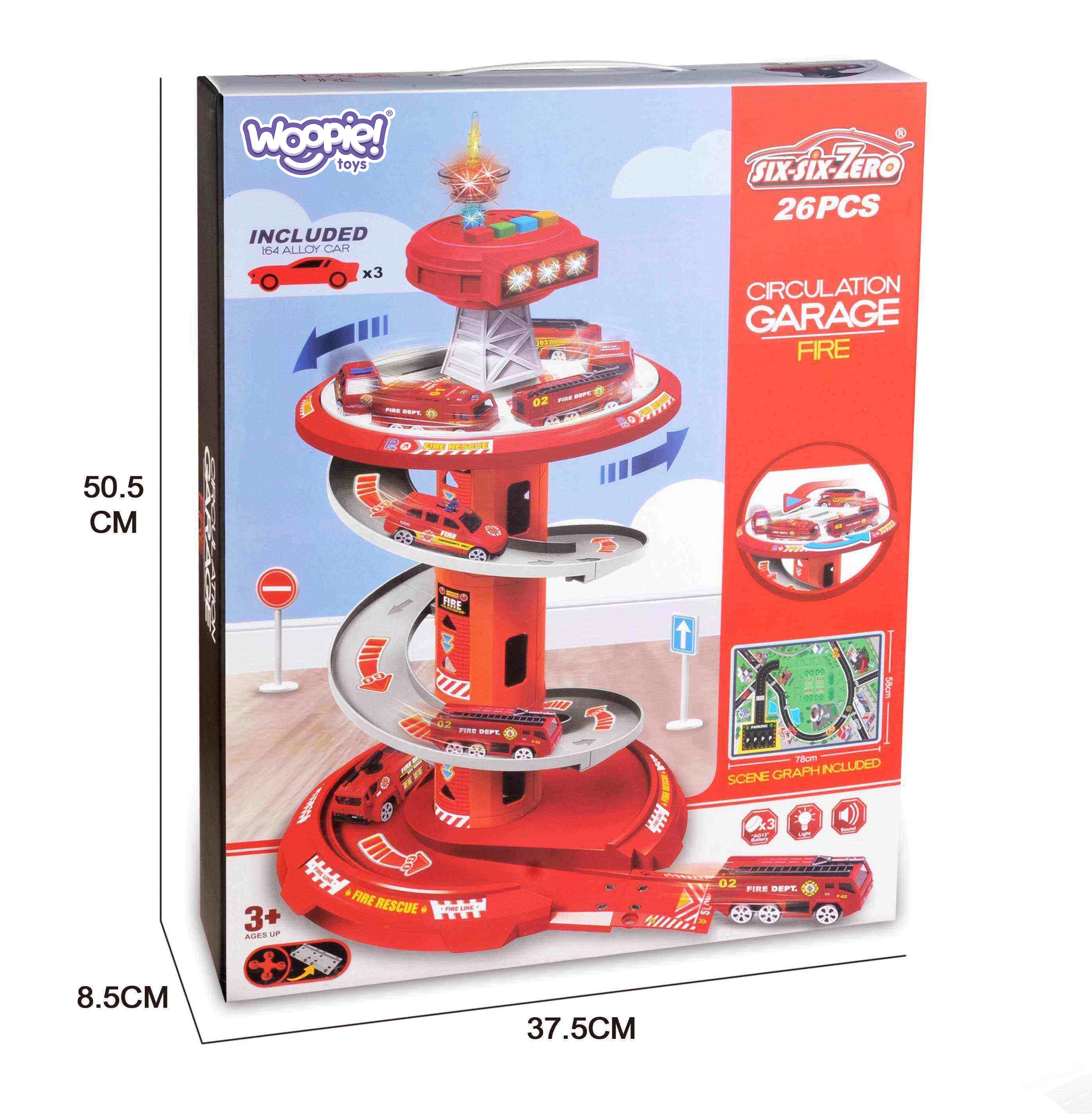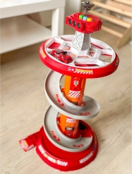 ¡Pon en marcha la diversión con el aparcamiento de bomberos multinivel WOOPIE! La torre estable con rampa en espiral permite un descenso fluido y rápido de los cochecitos desde la parte superior hasta la base. Los niños desarrollan la motricidad fina y la imaginación al salir a la ruta de salida señalizada y seguir las señales de tráfico.