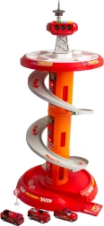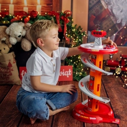 El divertido aparcamiento en espiral para pequeños bomberos de la marca WOOPIE ofrece una pista de varios niveles con descenso rápido, efectos de luz y sonido y 3 cochecitos de bomberos. Los niños a partir de 3 años disfrutarán de recorridos llenos de acción por la rampa circular, juego de intervenciones y conducción sobre la alfombrilla de carretera incluida con señales.