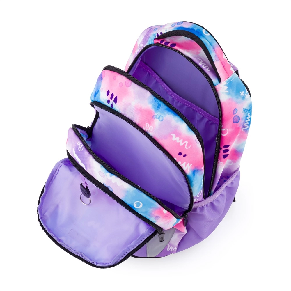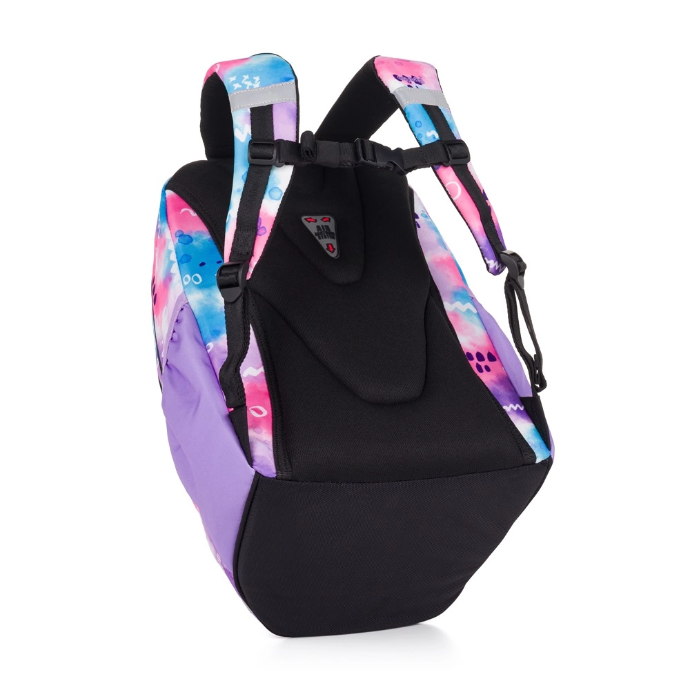 Oxybag Watercolor es una mochila práctica diseñada para uso escolar y de viaje. La distribución de tres compartimentos ofrece espacio para portátil, libros y otros artículos: