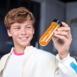 Llena el tubo con agua, ciérralo y agítalo hasta que empiece a burbujear para revelar tu botín secreto.