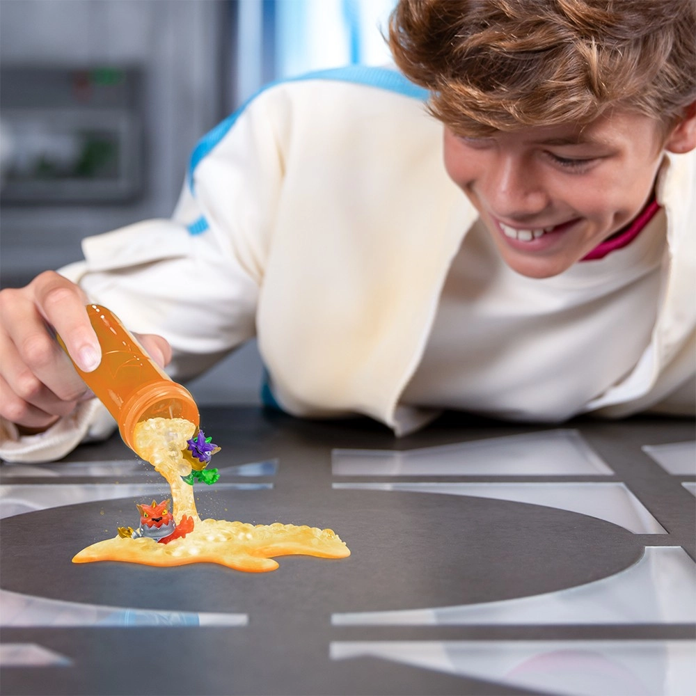 Llena el tubo con agua, ciérralo y agítalo durante 30 segundos hasta que empiece a burbujear. Luego retira el agua y revela dos mini figuras. Con hasta 85 figuras diferentes por descubrir, tienes la oportunidad de encontrar figuras comunes, raras, superraras e incluso que brillan en la oscuridad.