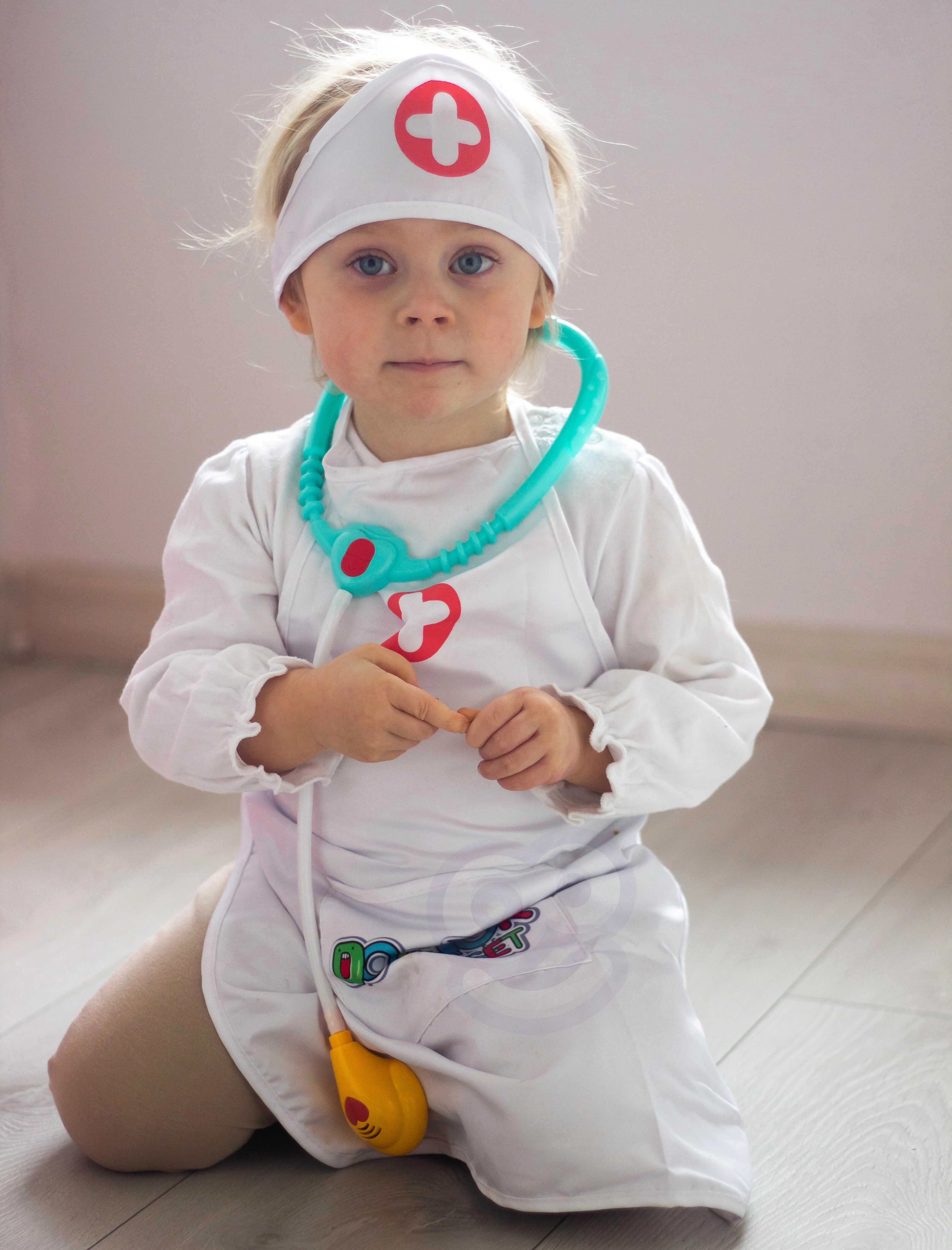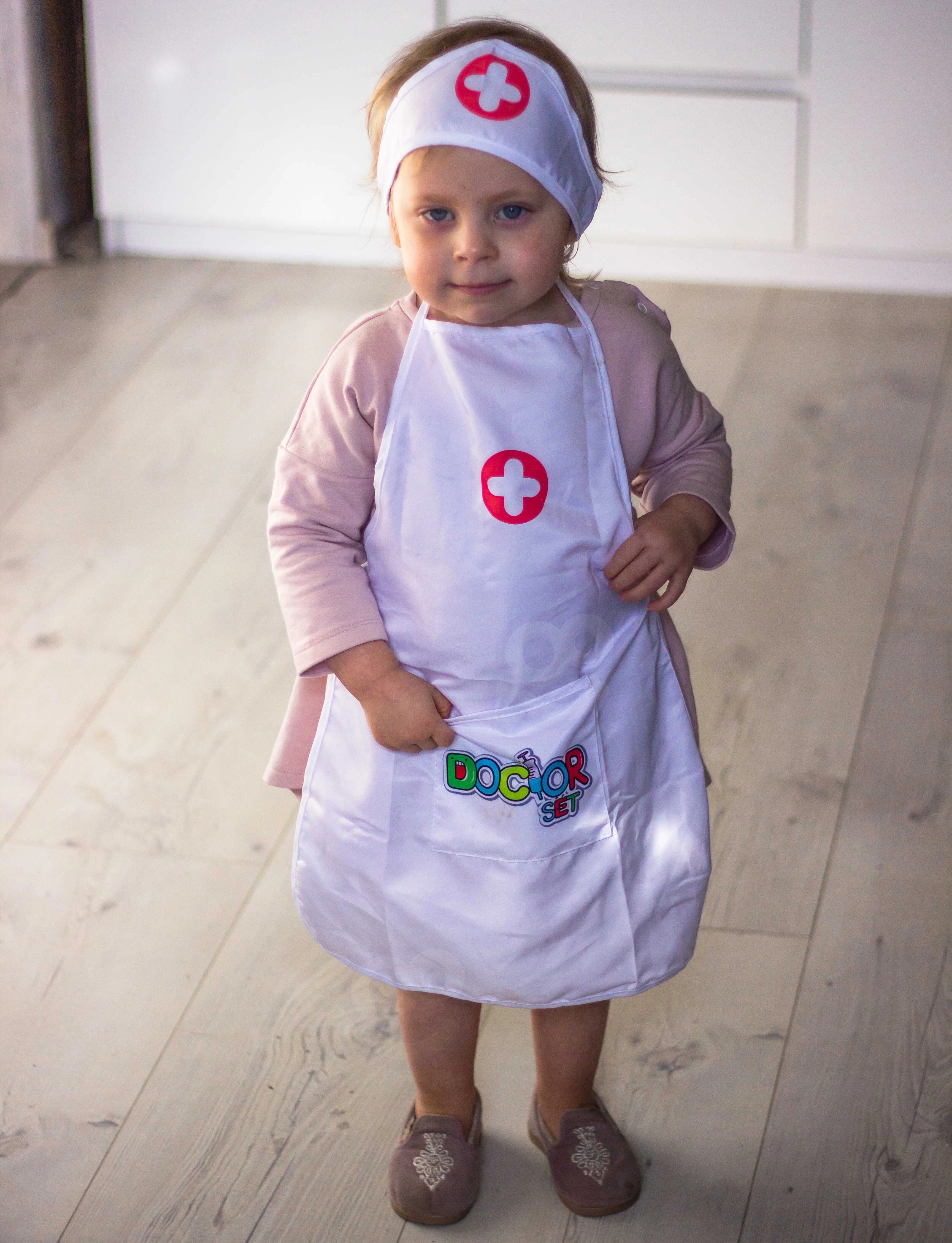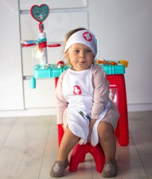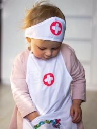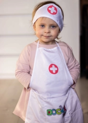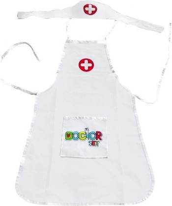 Delantal ligero con bolsillos prácticos que pueden guardar un estetoscopio y otros accesorios infantiles, para que el juego de doctor esté siempre a mano.