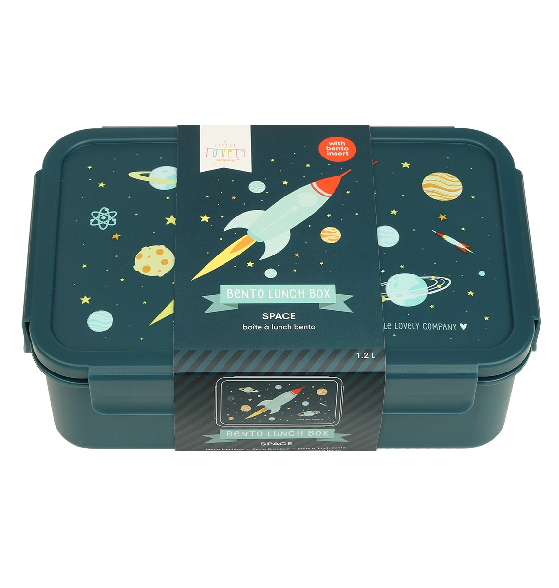 La adorable caja infantil para el almuerzo con motivo espacial de cohete ayuda a mantener fruta, verdura, pan y snacks bien separados. La práctica bandeja extraíble con dos compartimentos la convierte en un excelente bento box para la escuela, actividades y excursiones. La tapa hermética con cierre a presión minimiza derrames indeseados y mantiene el almuerzo fresco por más tiempo.