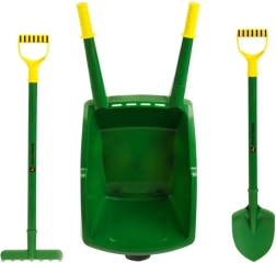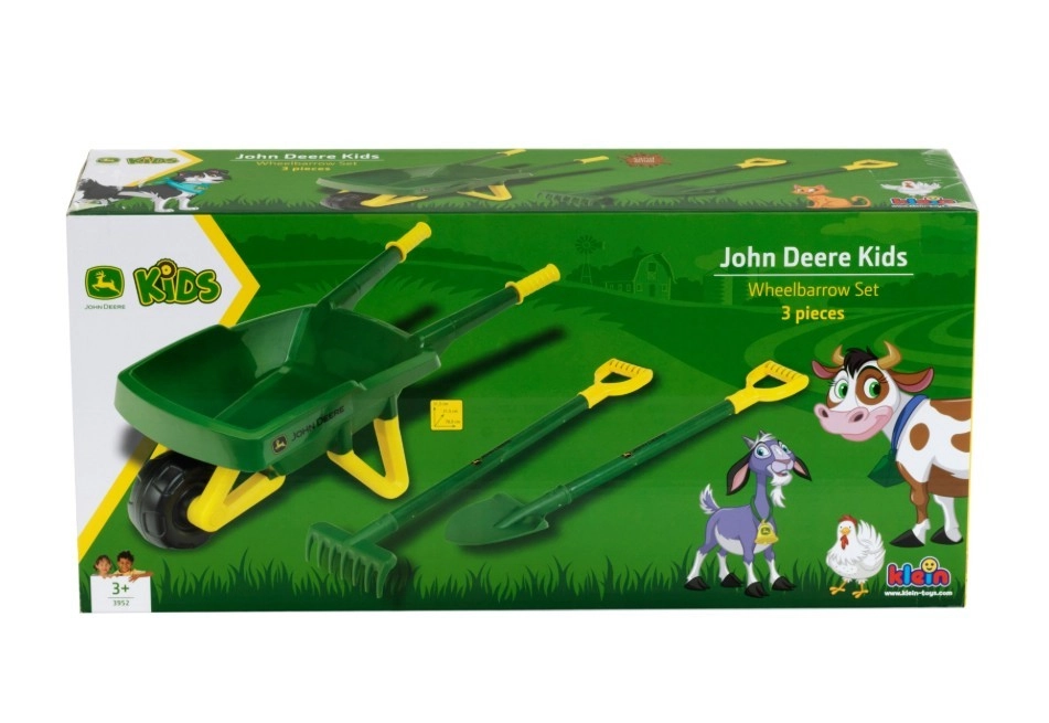 Este set de calidad en los icónicos colores de JOHN DEERE es ideal para niños a los que les gusta ayudar en el jardín. La carretilla resistente con agarre cómodo y la pala ligera con rastrillo están diseñadas para manos infantiles y garantizan un uso seguro y divertido al transportar tierra, arena, hojas o hierba.