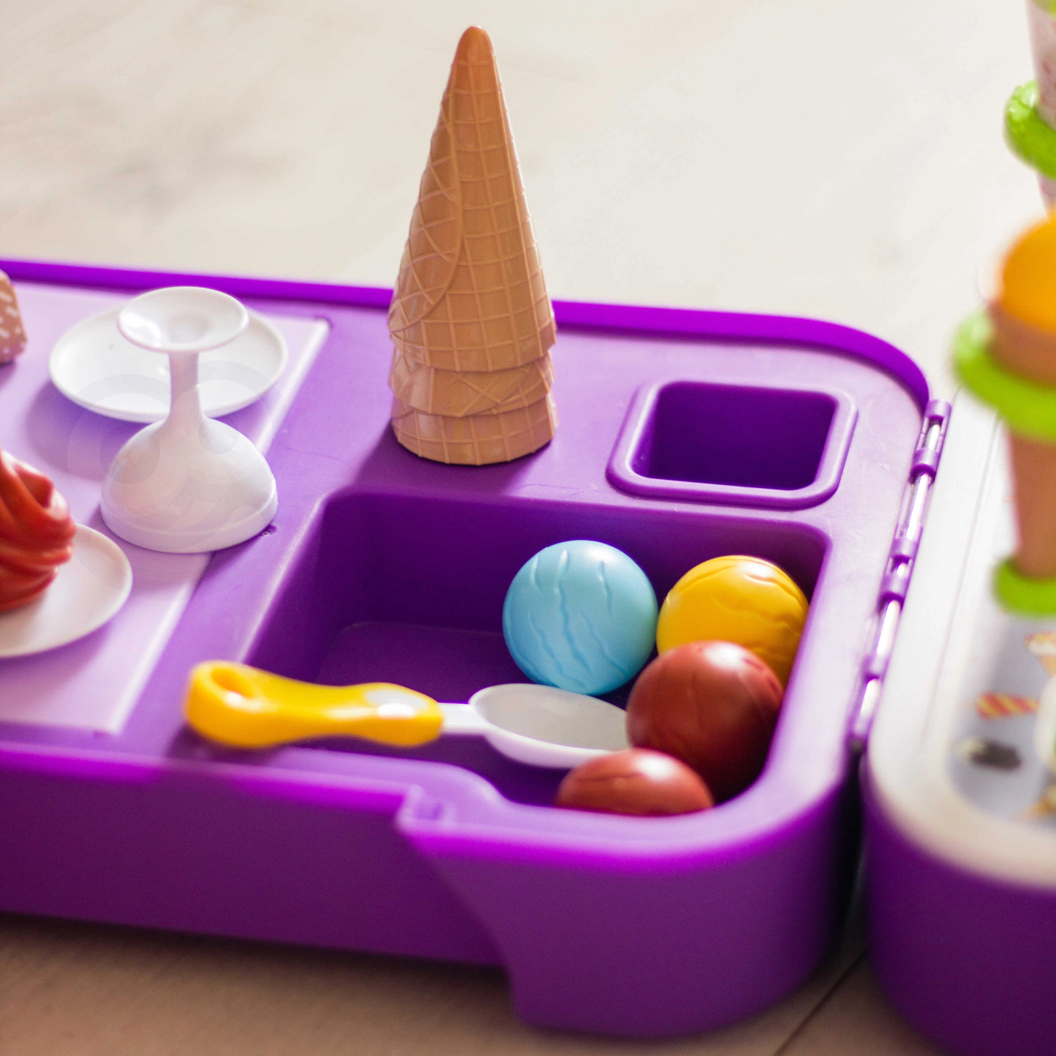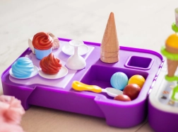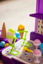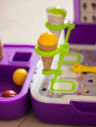 El puesto de helados permite a los niños vivir momentos alegres jugando a la heladería, lo que contribuye al desarrollo de su creatividad y habilidades sociales.
