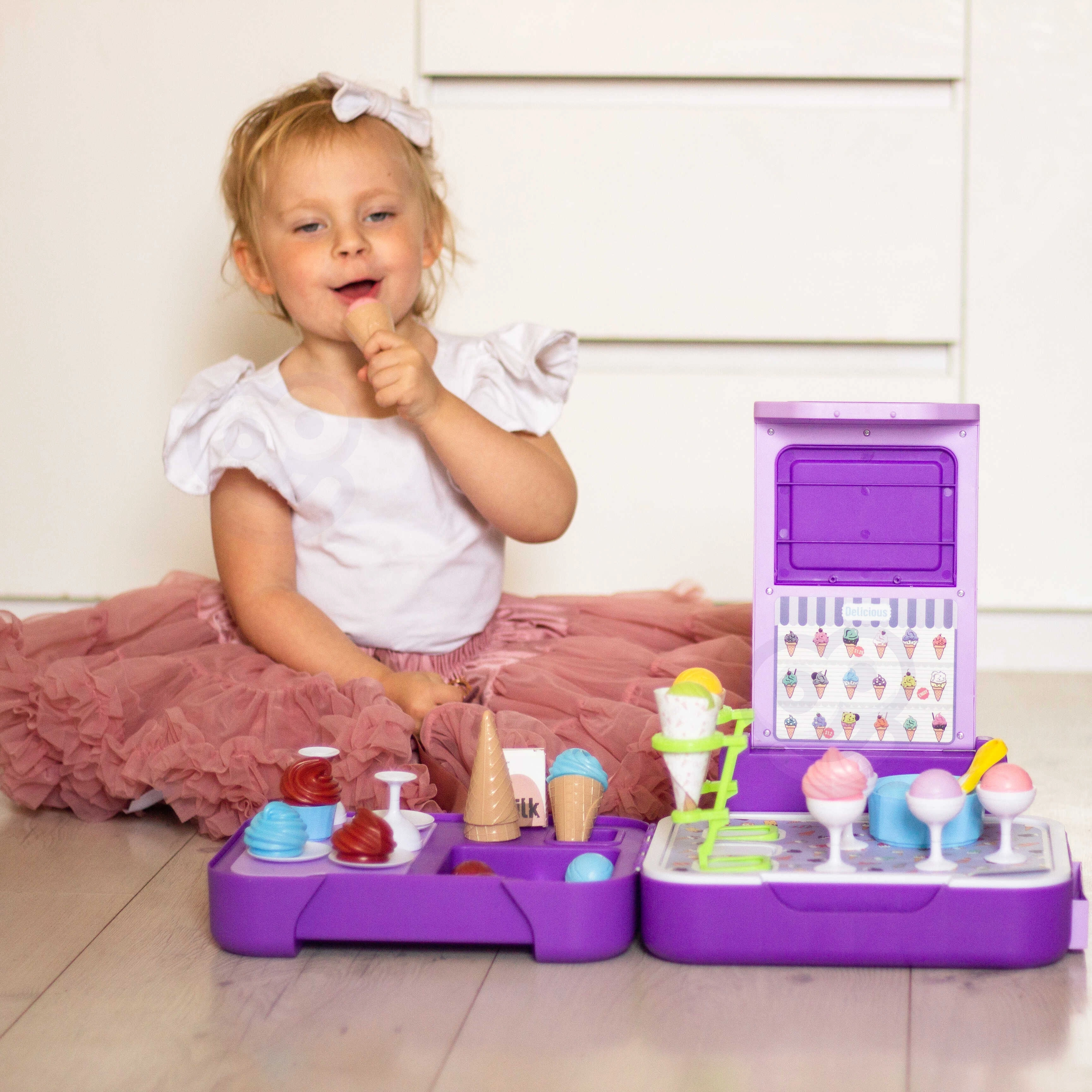 Disfruta de horas de diversión con el puesto portátil de helados Woopie, ideal para cualquier ocasión. Desde fiestas de cumpleaños hasta juegos escolares o de guardería, este set aporta alegría a la vida de los niños y les enseña importantes habilidades sociales.