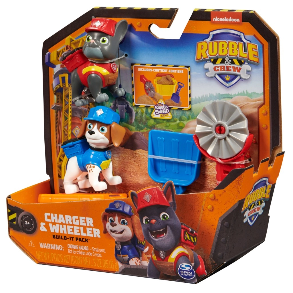 Charger y Wheeler, con uniformes de construcción auténticos de la serie RUBBLE & CREW, llevan a los niños a sus héroes favoritos directamente de la pantalla a su habitación.