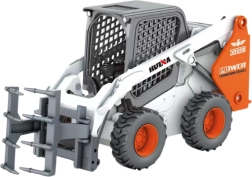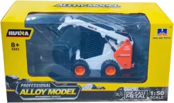 Modelo realista de cargador de ruedas con garra a escala 1:50 fabricado en aleación metálica resistente y plástico, con detalles precisos y funciones operativas. Cuenta con estructura metálica, brazo y garra móviles, ruedas de goma para un movimiento fluido y un atractivo diseño blanco y negro con detalles naranjas. Ideal para coleccionistas, como decoración y como juguete educativo.