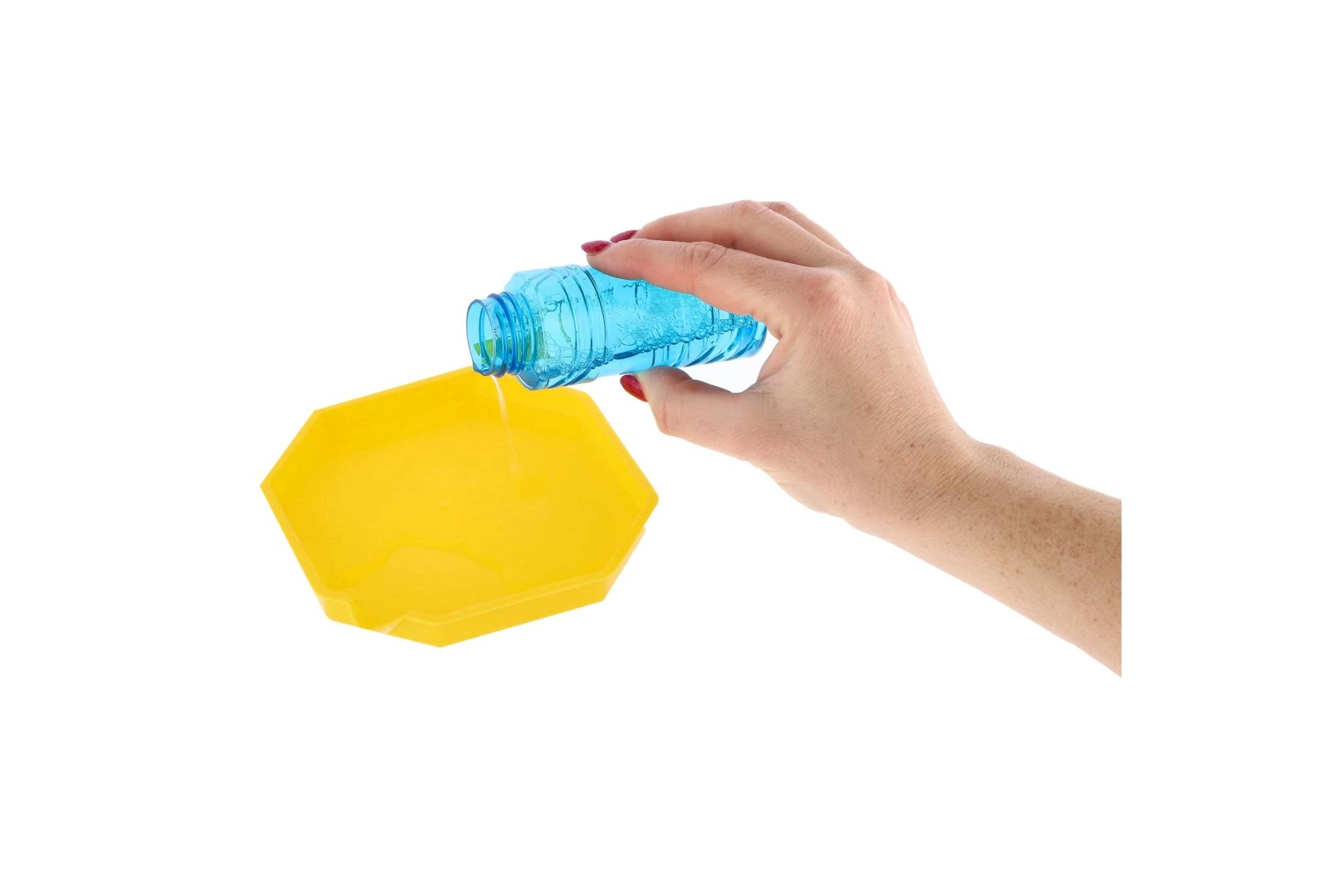 El práctico cuenco para la solución facilita mojar rápidamente la cabeza de boquillas y minimiza el desorden al jugar en casa o al aire libre.