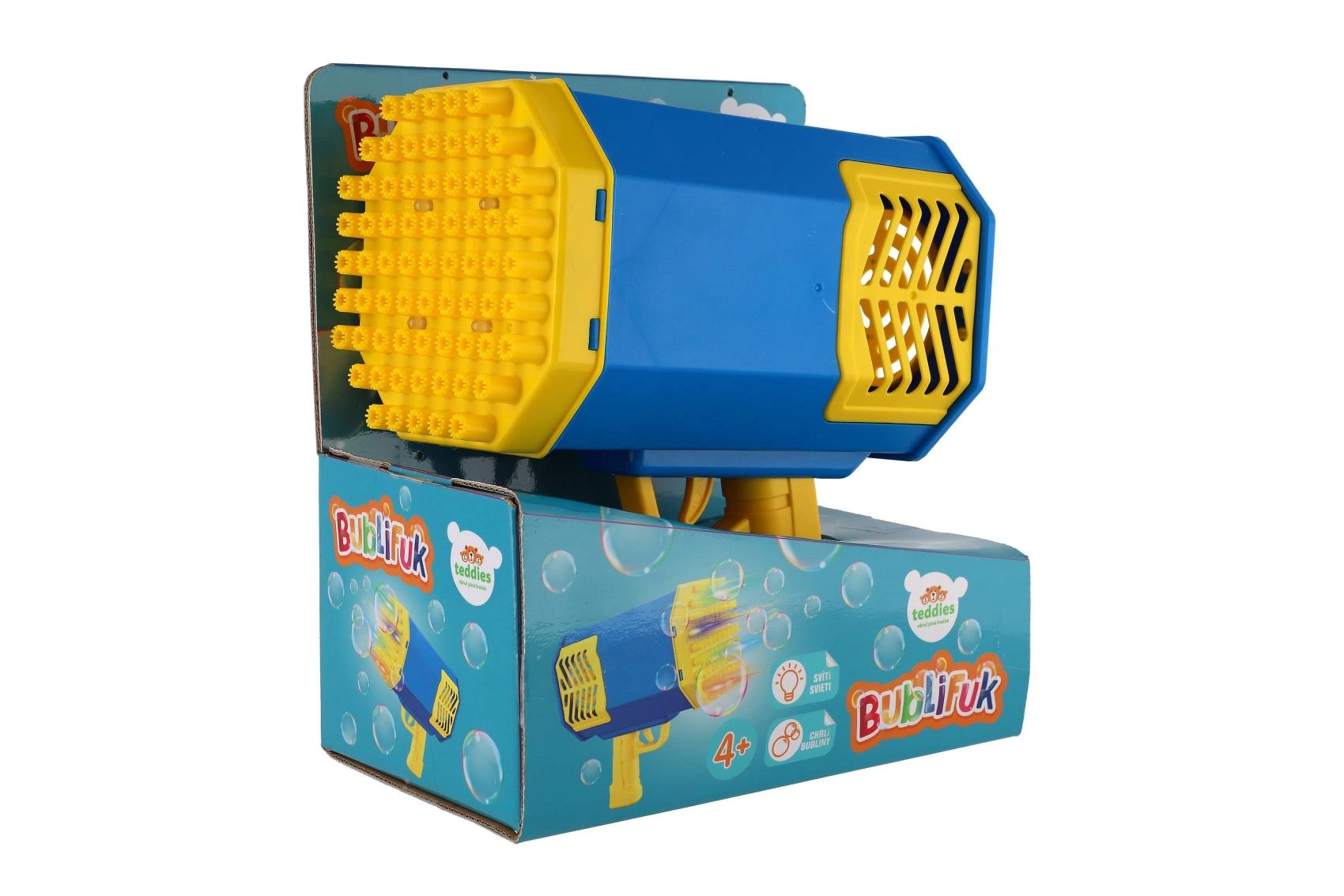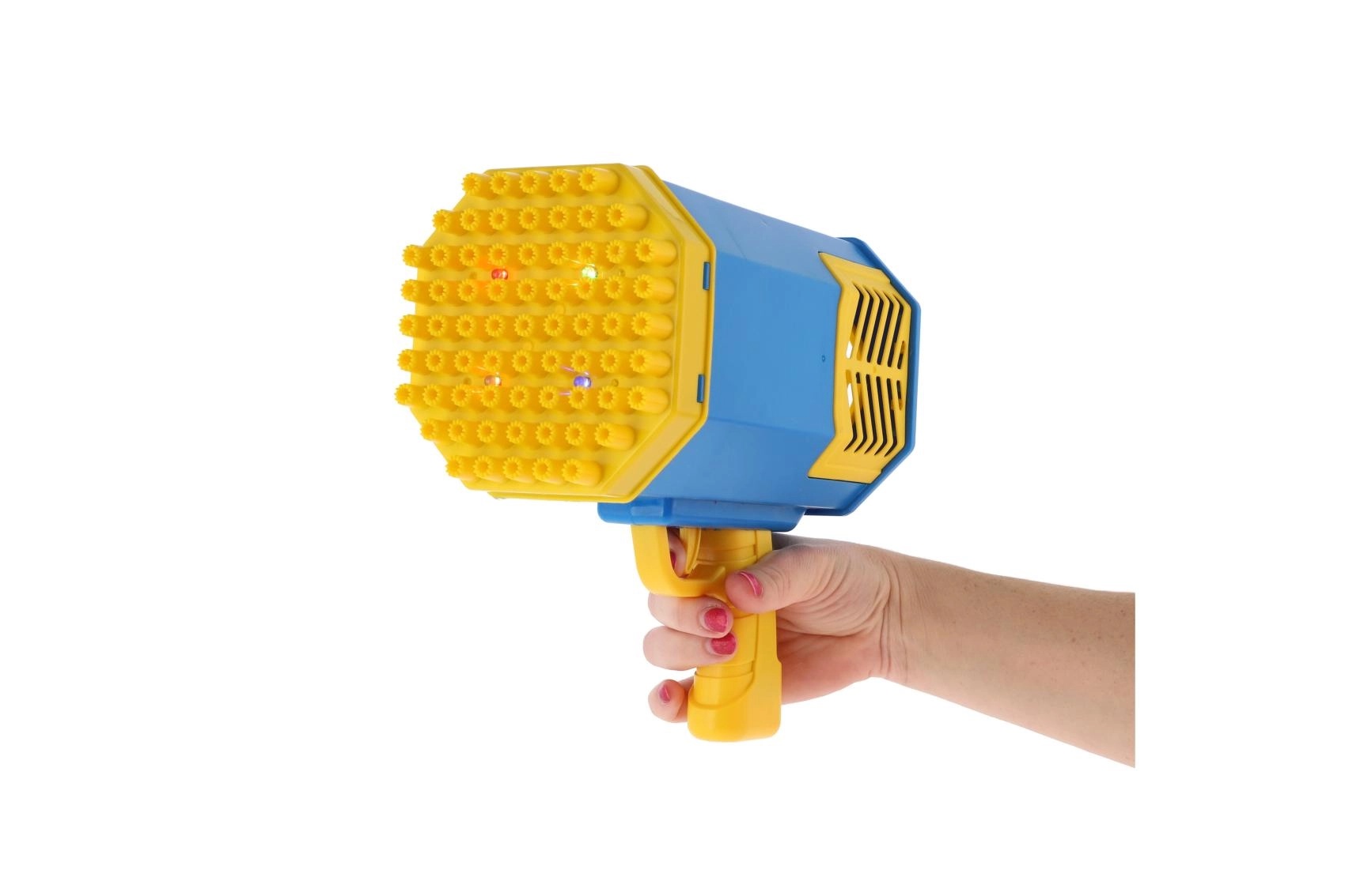Esta pistola de burbujas para niños convierte cualquier tarde en un espectáculo de colores. Su tamaño compacto de 22 cm, el mango ergonómico y la ligera construcción de plástico garantizan un agarre cómodo incluso para los más pequeños. La cabeza multiboquilla crea una lluvia de burbujas brillantes que encantará a grandes y pequeños.
