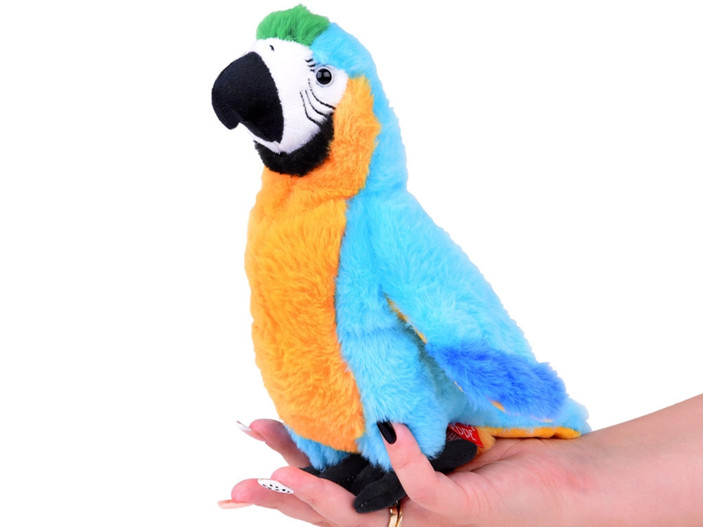 El guacamayo es una de las especies de loros más grandes, originario de América del Sur y Central, y a menudo sirve como elemento decorativo y también como mascota. Esta versión de peluche del loro se creó con atención al detalle y está hecha de materiales suaves y agradables con diferentes texturas y colores intensos para recordar lo más fielmente posible a un ave real. El pico de material seguro y los ojos de plástico aumentan la seguridad del juguete para los niños, y gracias a su construcción el loro puede mantenerse de pie por sí solo.