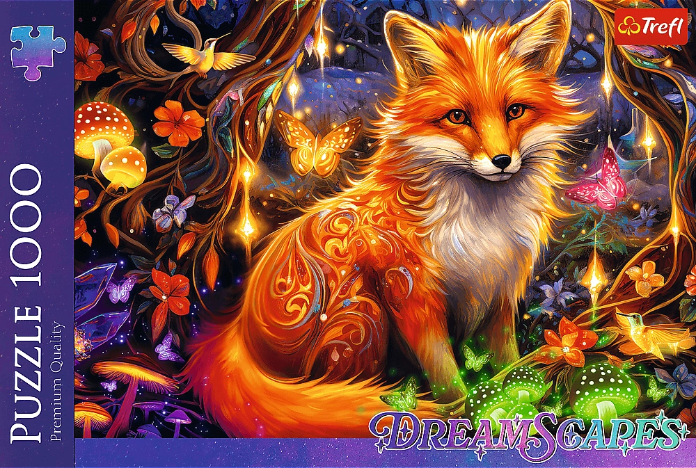El retrato fantástico del zorro con mariposas y setas brillantes convierte el montaje en una experiencia envolvente y la imagen final embellecerá tu hogar.