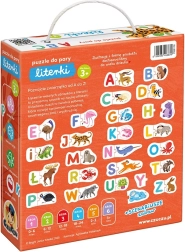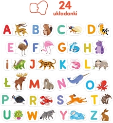 Descubre un divertido set educativo con 24 grandes rompecabezas de dos piezas que unen adorables animales con las letras del alfabeto. Enseña y entretiene, desarrolla la motricidad fina, la atención y los primeros pasos hacia la lectura y escritura. Incluye además un guía con ideas de juegos.