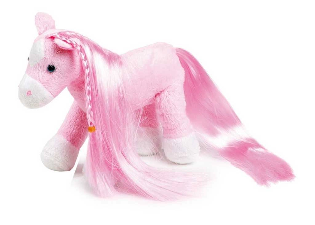 La adorable poni de peluche Paulina en un bolso encantará a cada pequeña coqueta. Tiene melena y cola largas para trenzar, es suave y mullida al tacto y, gracias a su tamaño compacto, los niños pueden llevarla fácilmente de viaje, al jardín de infancia o de visita.