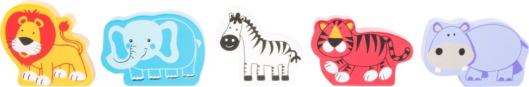 La locomotora y los vagones se unen con imanes, de modo que los niños pueden cargar fácilmente los animales y crear sus propias historias del zoológico.