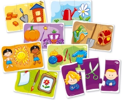 - 8 imágenes temáticas con tres piezas para un primer montaje sencillo