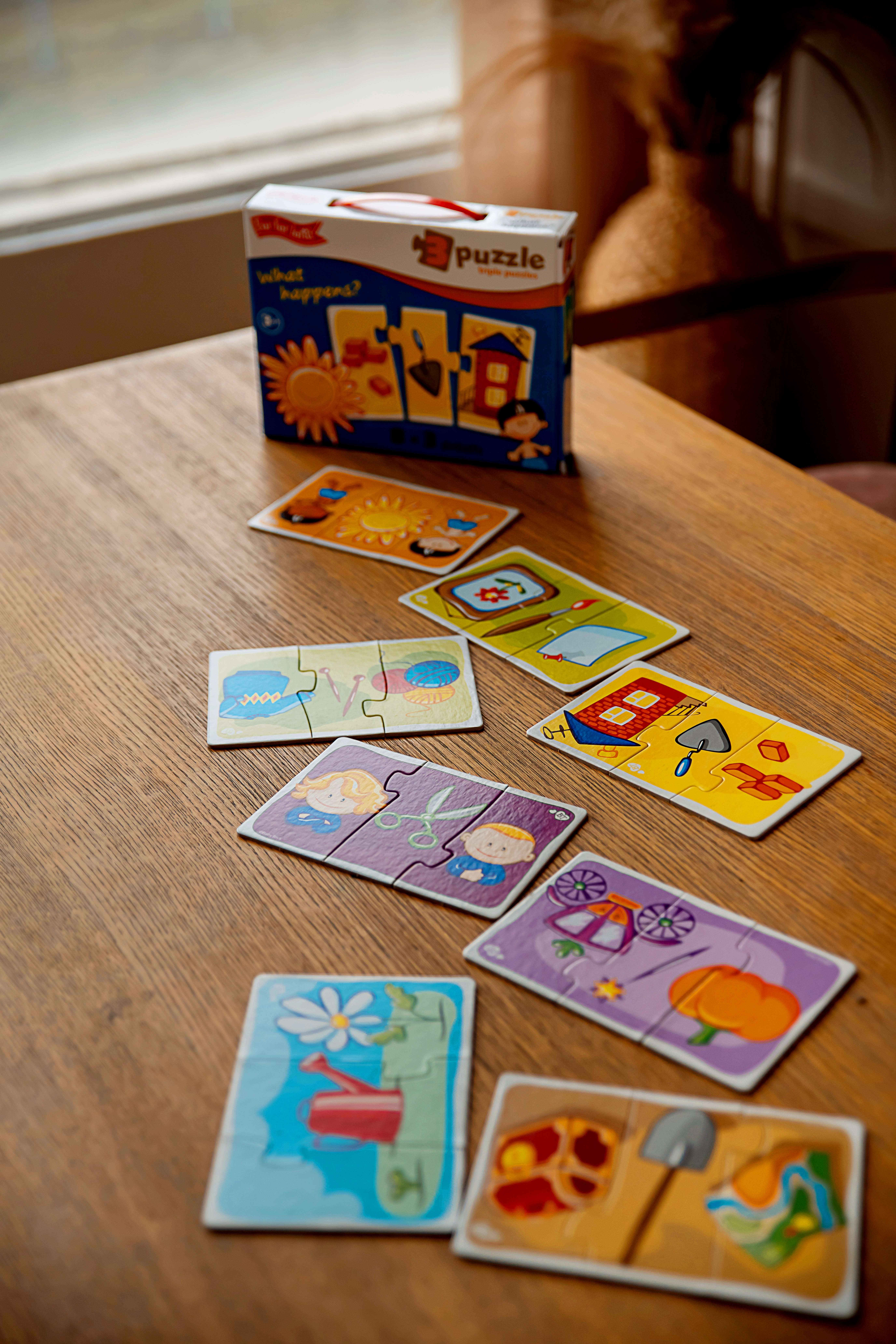 Descubre el ingenioso set de Far Far Land que enseña a los niños, de forma lúdica, la asociación y las conexiones entre objetos. Cada imagen está dividida en tres piezas y la tarea es encontrar el trío correcto que encaja. Montar las piezas fomenta la concentración, la paciencia y aporta alegría con cada motivo completado con éxito.