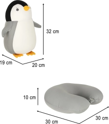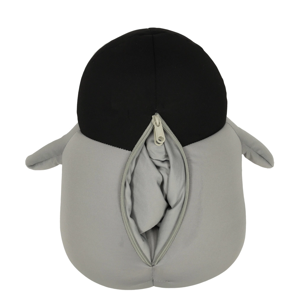 Descubra la almohada que en un instante se transforma en un pingüino de peluche. Gracias a su ingeniosa construcción rellena de ligeras bolitas de poliestireno, el cambio de forma es sencillo y rápido, lo que permite ajustar la forma y la firmeza según sea necesario.