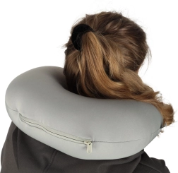 La almohada es compacta y cabe fácilmente en cualquier equipaje. Puede fijarla al equipaje gracias a su práctico asa.
