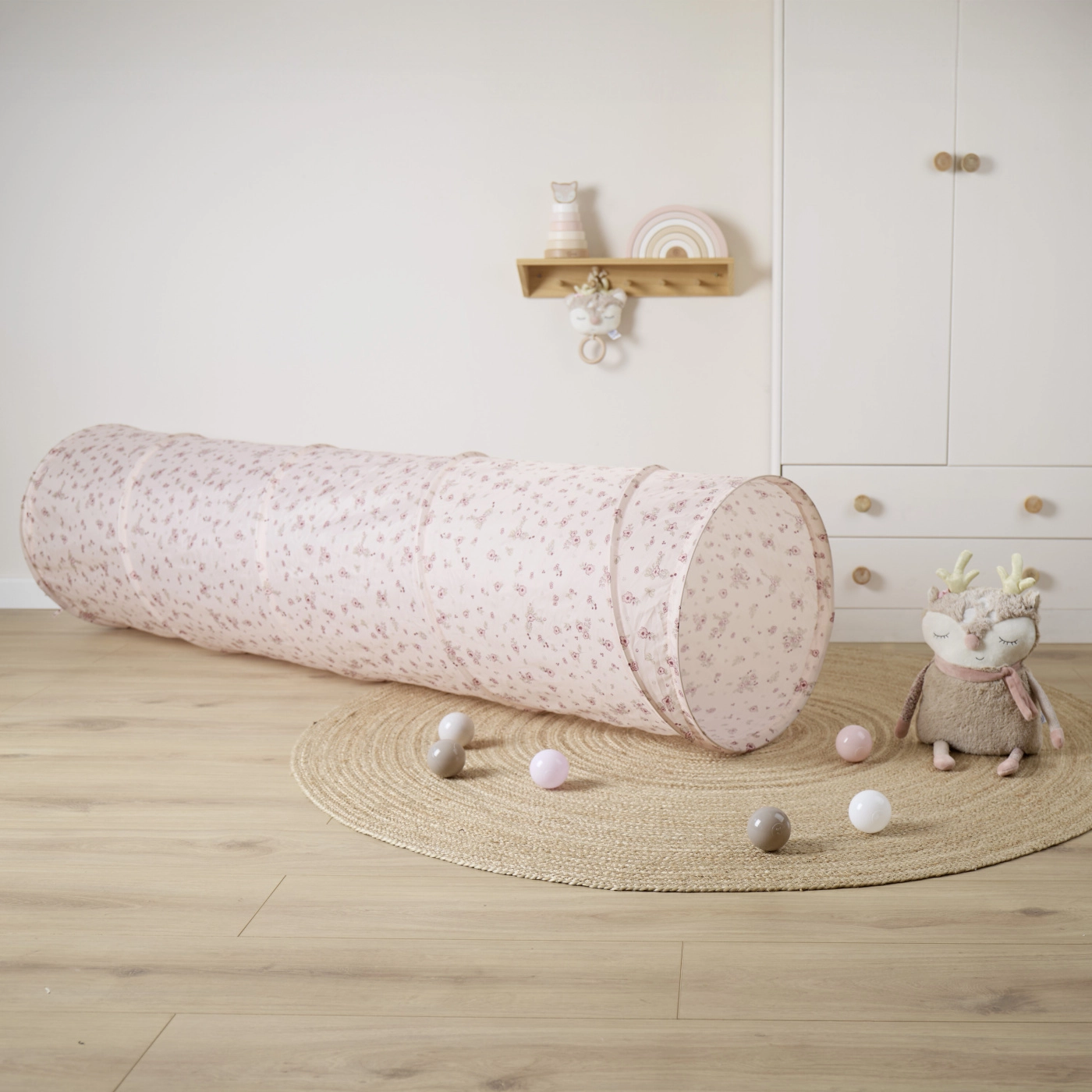 El túnel de juego autoextensible de la colección Dreamy Flowers convierte cualquier habitación infantil en un refugio acogedor. Fabricado en poliéster resistente, fácil de limpiar, este túnel ofrece horas interminables de diversión para los más pequeños.