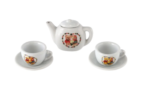 El set incluye una tetera, tazas y platillos con adorables motivos de ositos y animalitos que conquistan a primera vista. Sus dimensiones compactas de 18 × 11,5 × 3,5 cm facilitan el almacenamiento y el transporte.