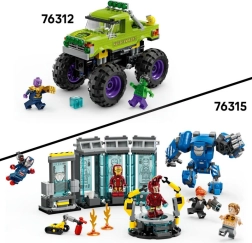 LEGO MARVEL Camión monstruo Hulk vs. Thanos (76312) es un set de construcción de acción para niños a partir de 7 años que incluye un camión monstruo con suspensión, minifiguras de Hulk y Thanos, y accesorios icónicos como el Tesseracto y el Guantelete del Infinito. Una elección ideal para fans de los Vengadores, los coches grandes y la construcción creativa.