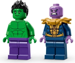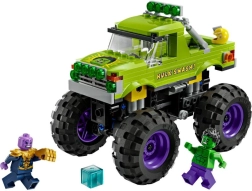 Construye un heroico camión monstruo preparado para cualquier misión. La cabina abatible alberga espacio para la minifigura de Hulk, las enormes ruedas y la suspensión superan cualquier terreno, y el estampado ¡Hulk Smash! aporta un estilo inconfundible. También incluye al imponente Thanos con el Guantelete del Infinito y el Tesseracto para choques épicos entre el bien y el mal.