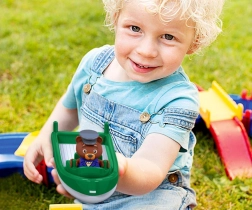 La pista de agua AquaPlay Megapuente ofrece infinitas posibilidades de diversión y descubrimiento para niños y padres. Este completo set de juego incluye 49 piezas, entre ellas un barco portacontenedores, un camión anfibio de carga y dos figuras.