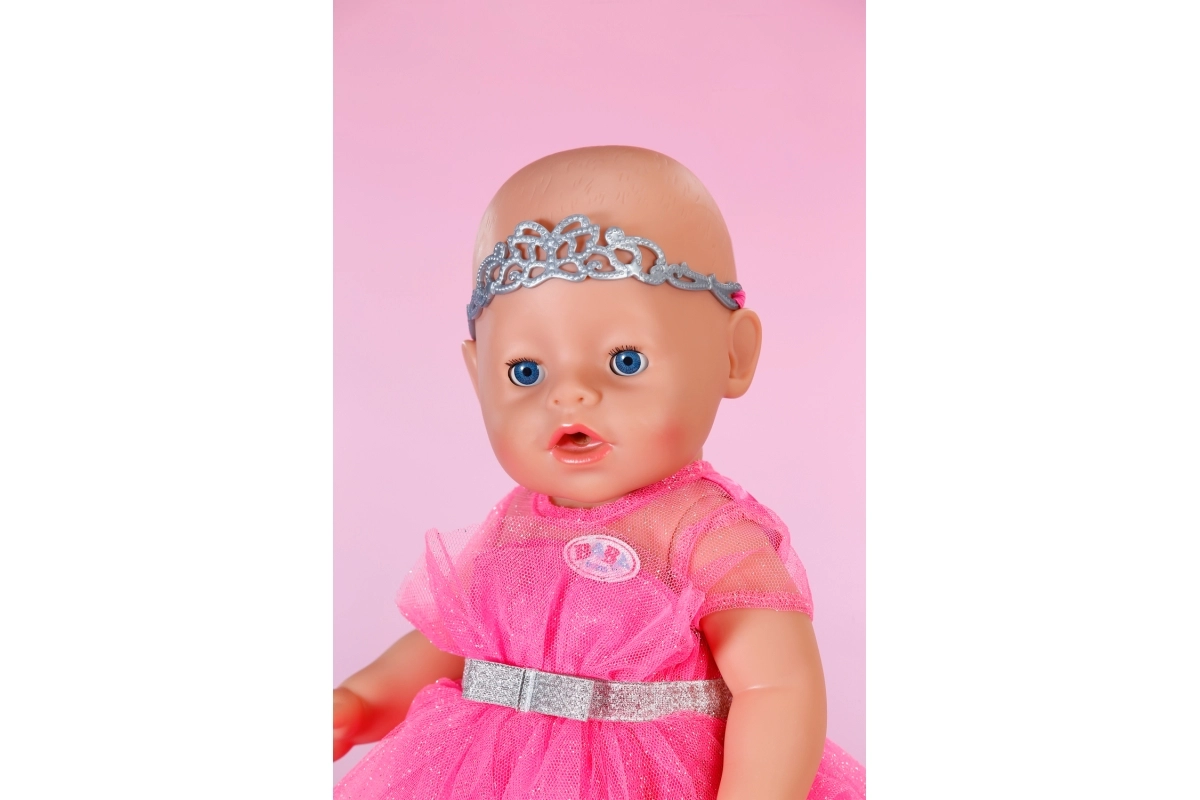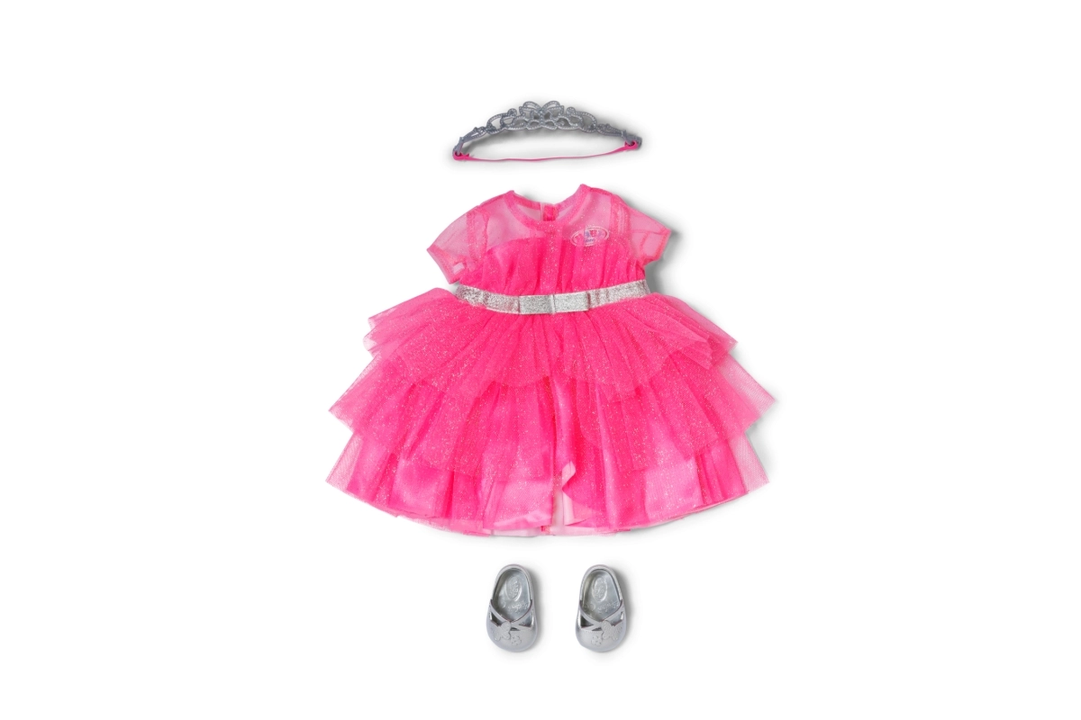 El conjunto está diseñado para muñecas BABY born de 43 cm y fomenta el desarrollo de la creatividad, la motricidad fina y las habilidades sociales. Las y los peques pueden combinar el vestidito con otros accesorios y crear nuevos estilos de princesa.