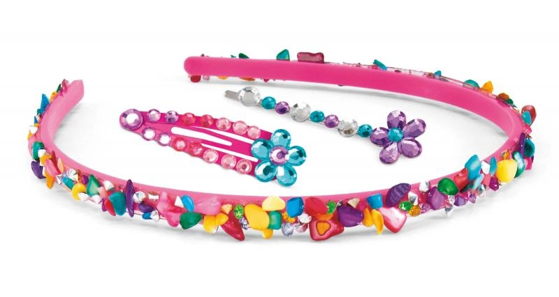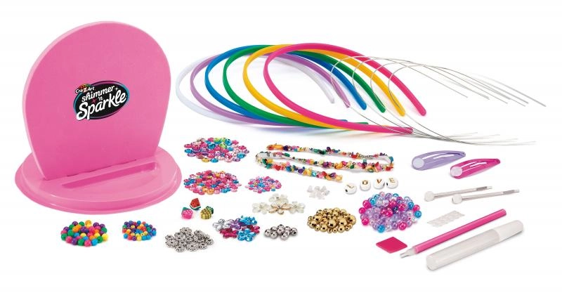 Shimmer 'n Sparkle ofrece un kit creativo para niños que permite crear diademas y adornos para el cabello brillantes. El set fomenta la creatividad y la motricidad fina e incluye todo lo necesario para fabricar accesorios con estilo.