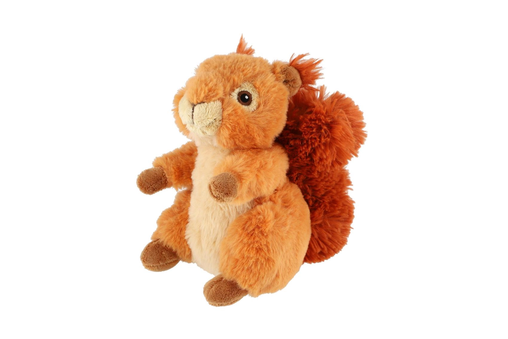 Adorable ardilla de peluche con cola esponjosa que aporta a niños y adultos la alegría de abrazarla y jugar. Está hecha de peluche suave y aterciopelado, tiene colores auténticos y detalles bordados seguros. Gracias a su tamaño compacto de 19 cm, encaja perfectamente en las manos infantiles y es ideal como compañera desde 0+.