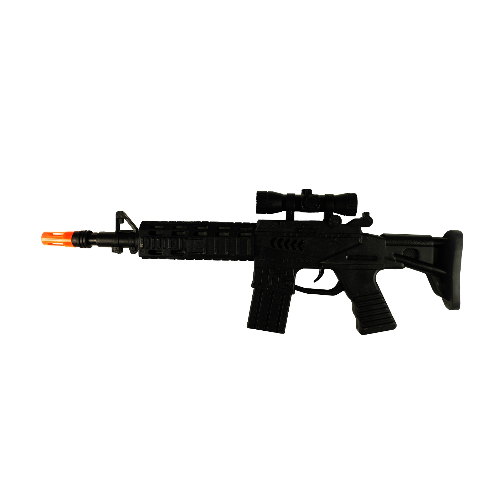 El subfusil mecánico infantil de 40 cm encantará a todos los pequeños fans de los juegos de acción. Al presionar el gatillo emite sonidos realistas y durante la “disparos” chispea, lo que potencia una experiencia de juego auténtica sin necesidad de pilas.