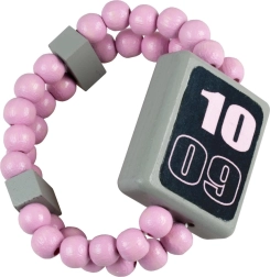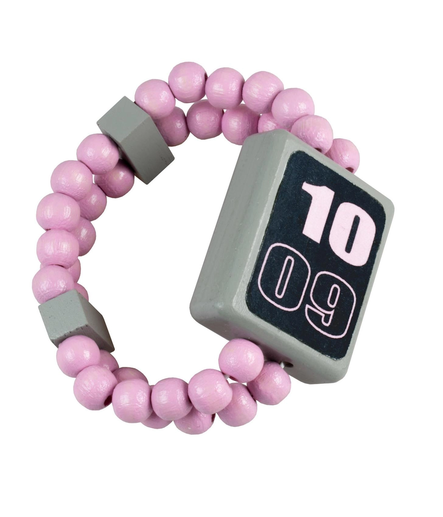 Perlas de madera rosas en goma elástica que se ponen fácilmente y se ajustan bien a la muñeca infantil.