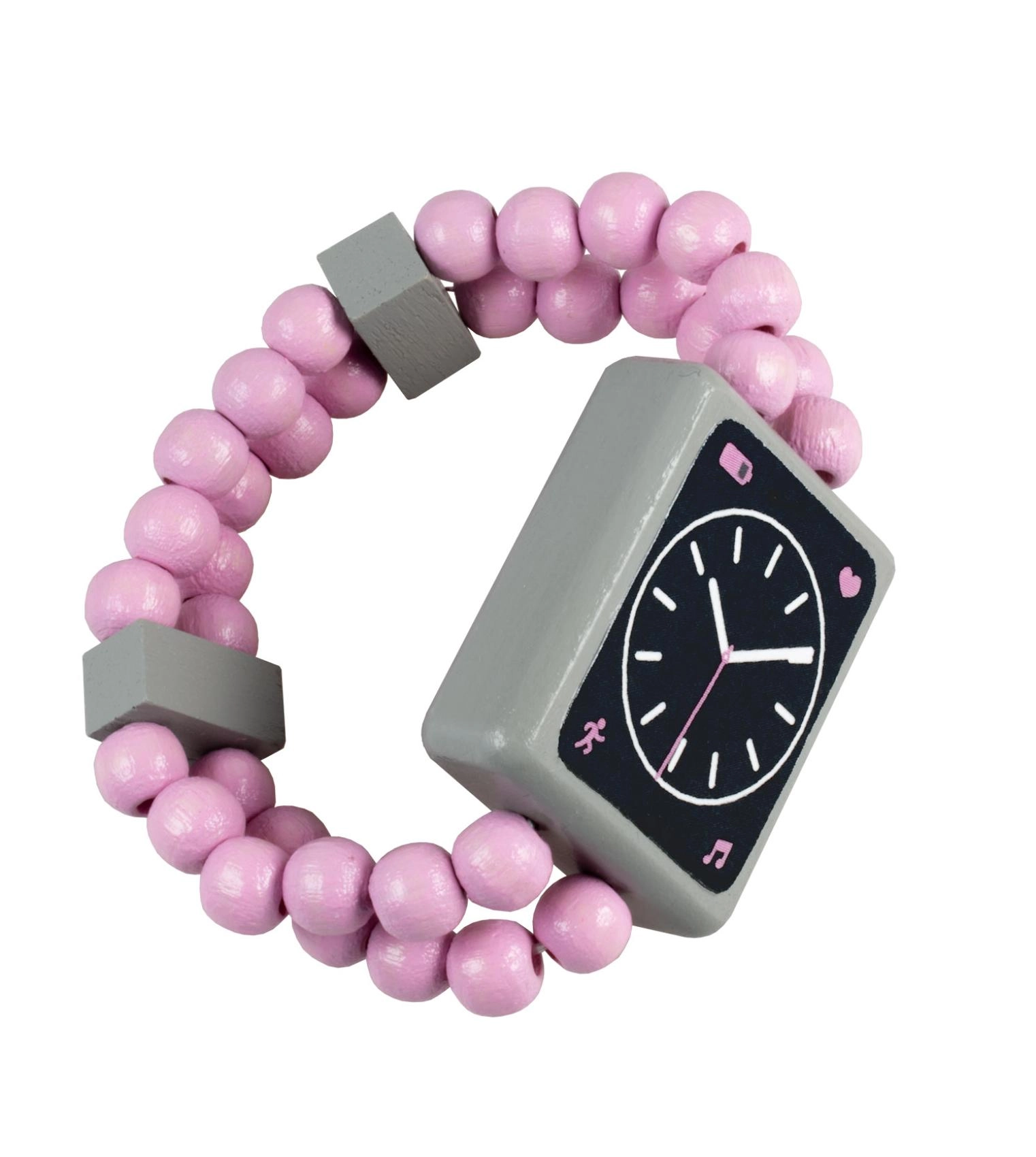 La pulsera elástica de suaves cuentas de madera se adapta cómodamente a la muñeca infantil. Los materiales de calidad y el esmerado acabado garantizan un juego seguro y duradero a diario. Además, los peques disfrutarán del juego de simulación de un reloj inteligente.