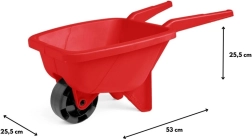 Ligera y resistente carretilla infantil ideal para el jardín, la arena y la playa. Gracias a su longitud compacta de 53 cm, es fácil de manejar incluso para los más pequeños. Asas perfiladas que garantizan un agarre cómodo y mejor equilibrio, mientras que el plástico resistente y seguro soporta diversas condiciones climáticas. Perfecta para transportar arena, juguetes y pequeños elementos naturales y para desarrollar la motricidad y la creatividad.