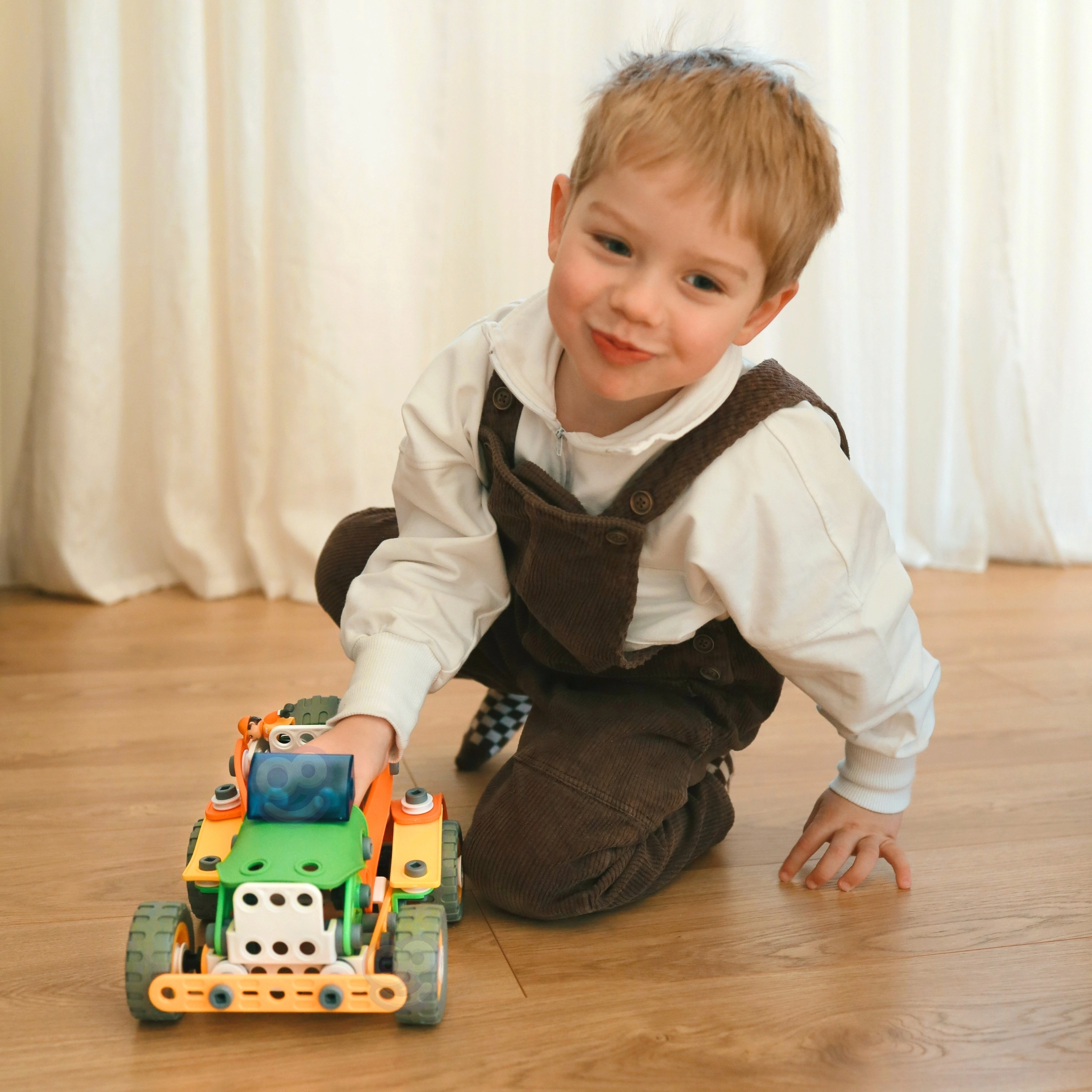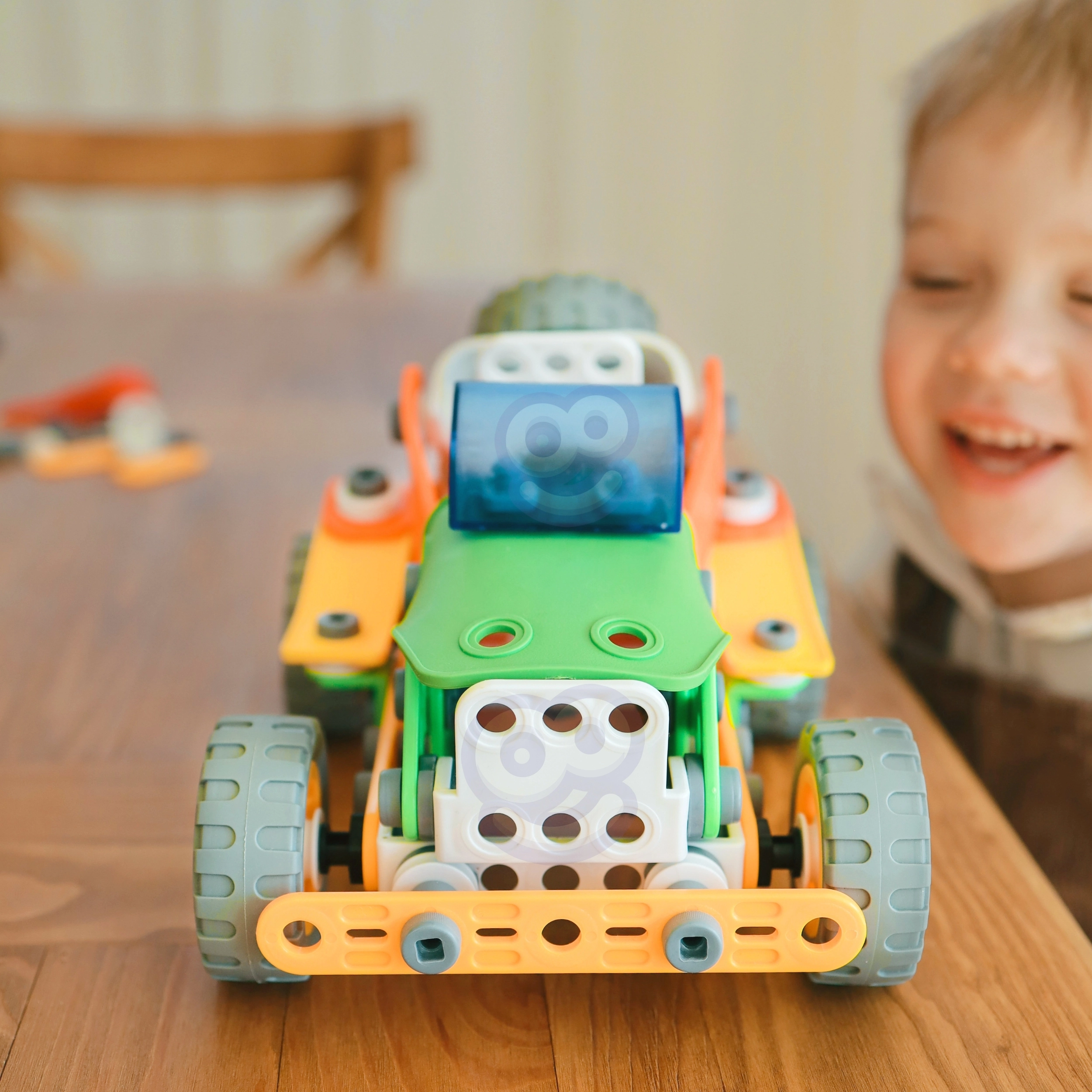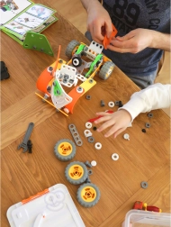 El set fomenta la creatividad, el pensamiento lógico, la motricidad fina y la percepción espacial: ideal para los primeros pasos en el mundo de la ingeniería.