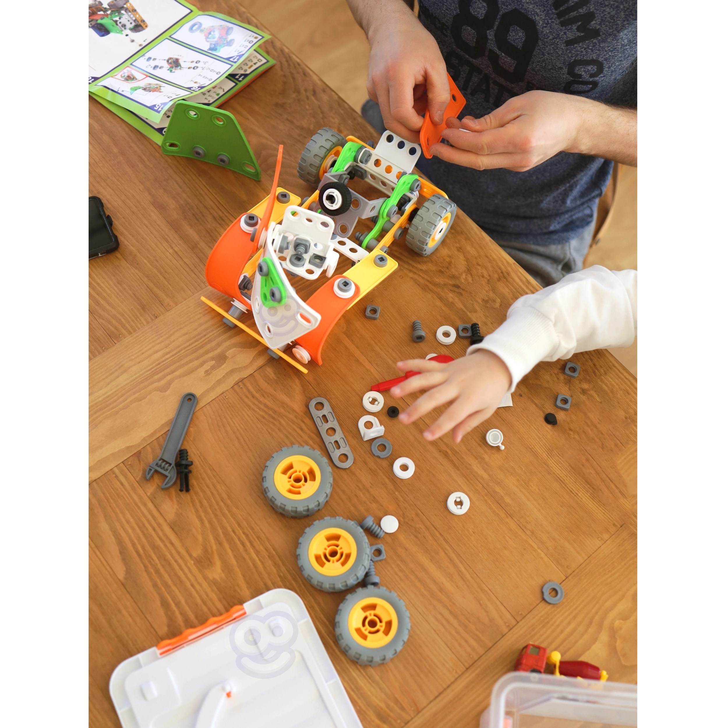 Desarrolla la imaginación y las habilidades de los niños con el set de construcción WOOPIE STEM 5 en 1 con 164 piezas flexibles. Los niños podrán construir un coche, un quad, un helicóptero, un avión y un robot, creando partes móviles gracias a los tornillos y ruedas. Materiales duraderos, seguros para niños, y un manual claro garantizan horas de diversión creativa y aprendizaje a través del juego.