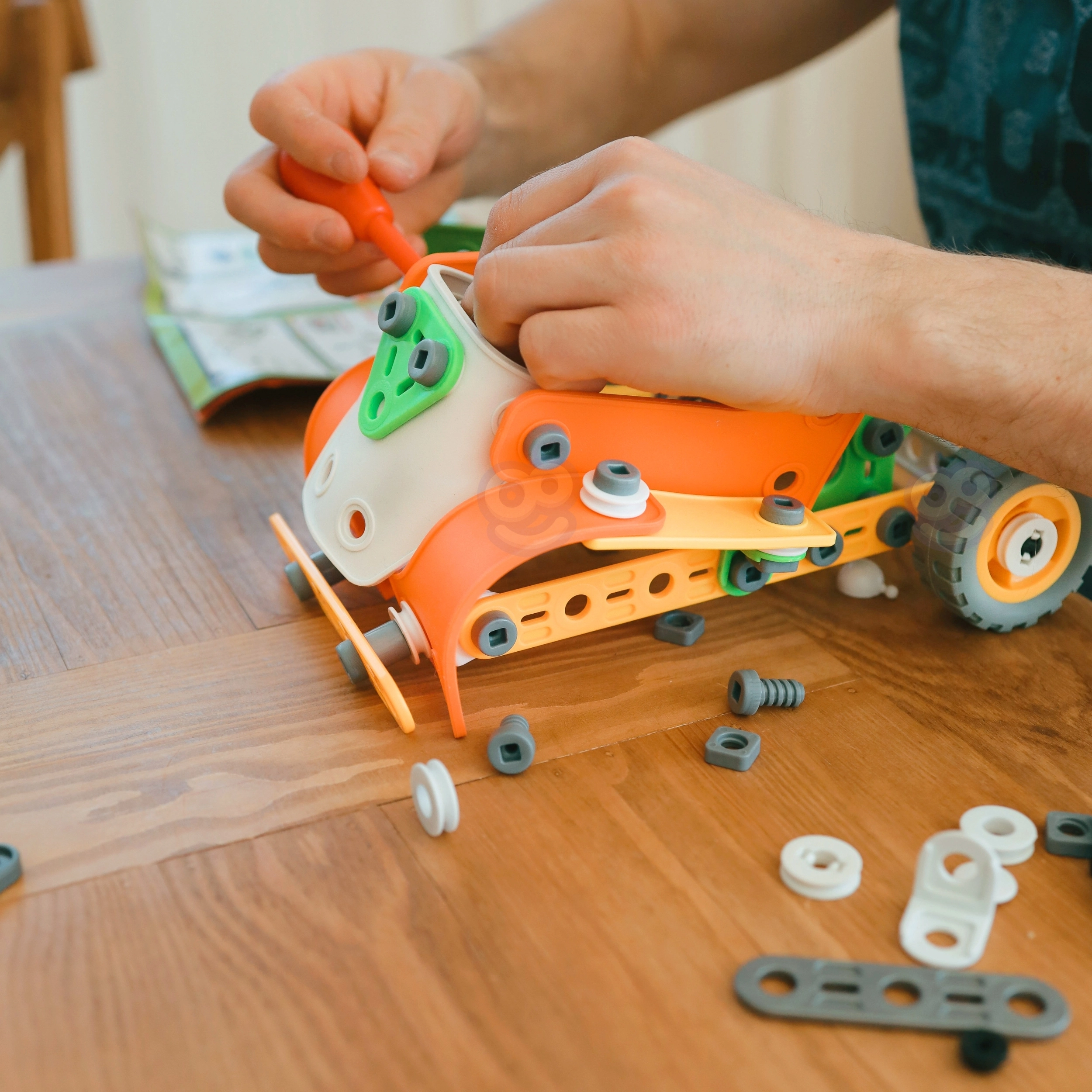 El set de construcción Woopie STEM 5 en 1 ofrece todo lo que los niños adoran: piezas de colores, tornillos, ruedas y herramientas con las que pueden montar, desmontar y volver a construir fácilmente. Gracias a los elementos flexibles surgen combinaciones originales y modelos con partes realmente móviles.