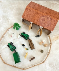 Los niños desarrollan la motricidad fina, el vocabulario y la imaginación. Jugar con figuras y vehículos motiva a contar historias y aprender sobre la vida en la granja.