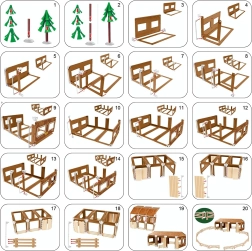 El juego favorece de forma natural el desarrollo de la motricidad fina, la coordinación ojo–mano, la creatividad y la comunicación: los niños aprenden los nombres de los animales, imitan sonidos y crean sus propias historias. La caja compacta con práctica asa facilita el transporte y el almacenamiento de todo el set.